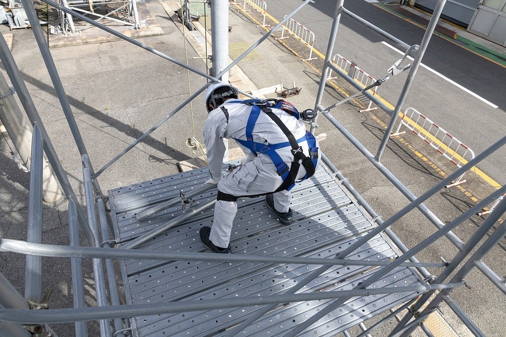 建築系の高所作業では、建物の構造や形状に応じた機械の設計が困難であ り、現在の技術では安全性の十分な対応も難しい状況です。精密な作業や高コ ストも大きな障壁となっています。長時間作業や不自然な姿勢により、腰痛や 肩こりを引き起こし、高所作業による心理的ストレスも作業者の健康に影響を 与える可能性があります。また、高所作業ではフルハーネスの着用が義務付け られており、その干渉が長年の課題でしたが、国内シェアトップの藤井電工株 式会社の協力により、効果的な製品化が実現しました。
