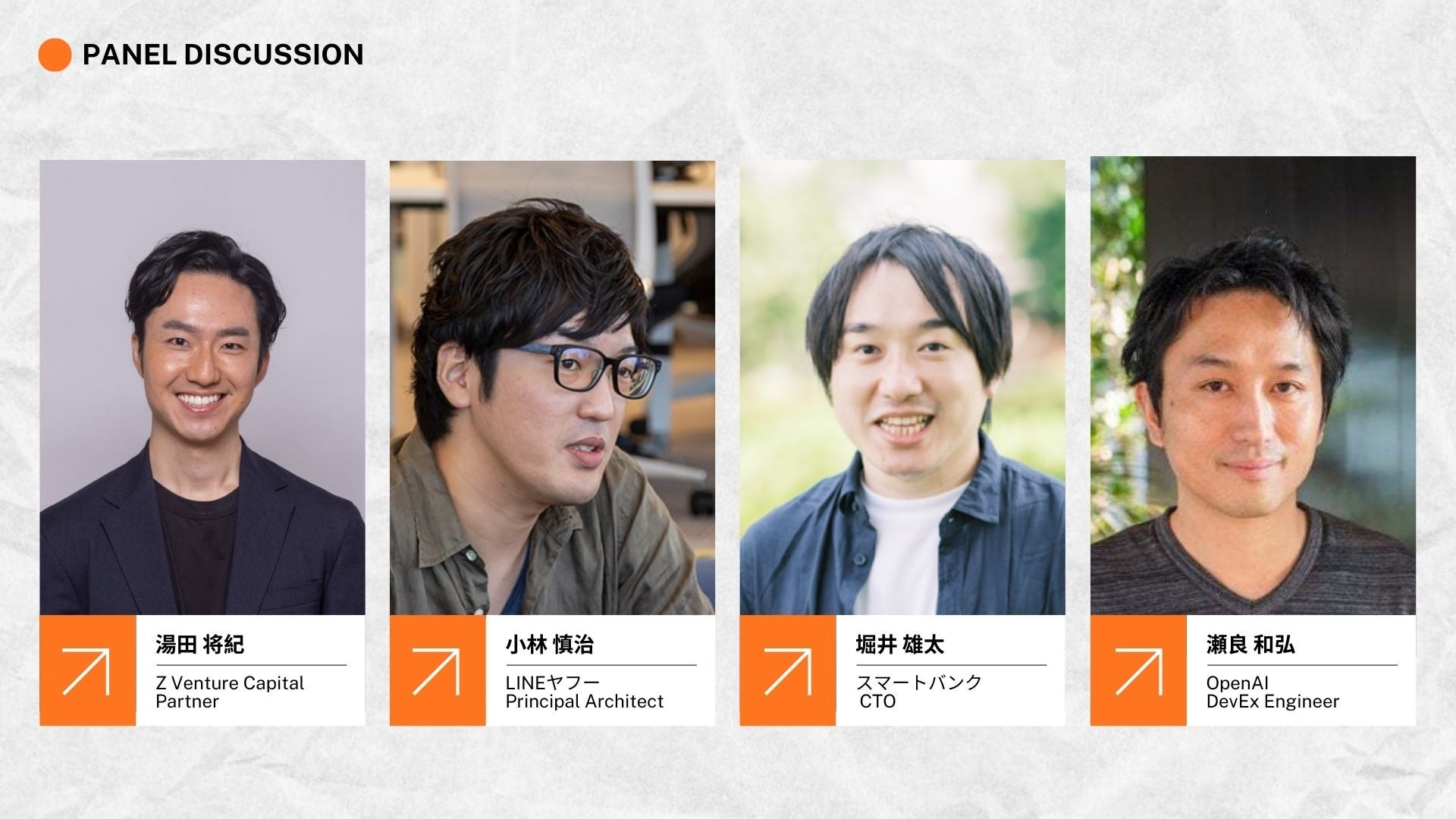 The event also featured a panel discussion with Shinji Kobayashi (Unit Lead / Principal Architect at LY Corporation), Yuta Horii (CTO of SmartBank), and Kazuhiro Sera from OpenAI Japan. The session was moderated by Masaki Yuda, Partner at Z Venture Capital.
