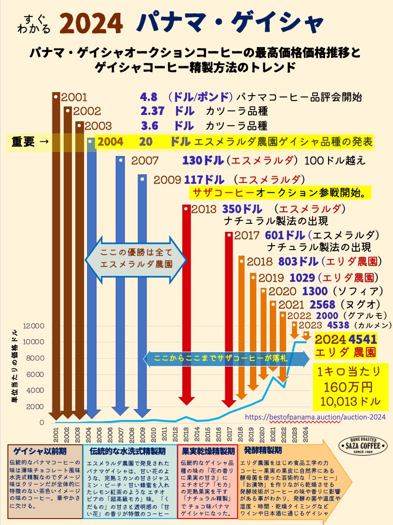 2001年からはじまるパナマコーヒー品評会だが、2004年にゲイシャが発見されて以降、ゲイシャは品評会で最高価格をつける。