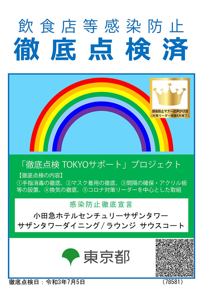小田急ホテルセンチュリーサザンタワーでは、お客様ならびに従業員の健康と安全を守ることを第一優先に医学的見地からの最新のエビデンス(裏付け)に基づく感染拡大防止対策を講じております。