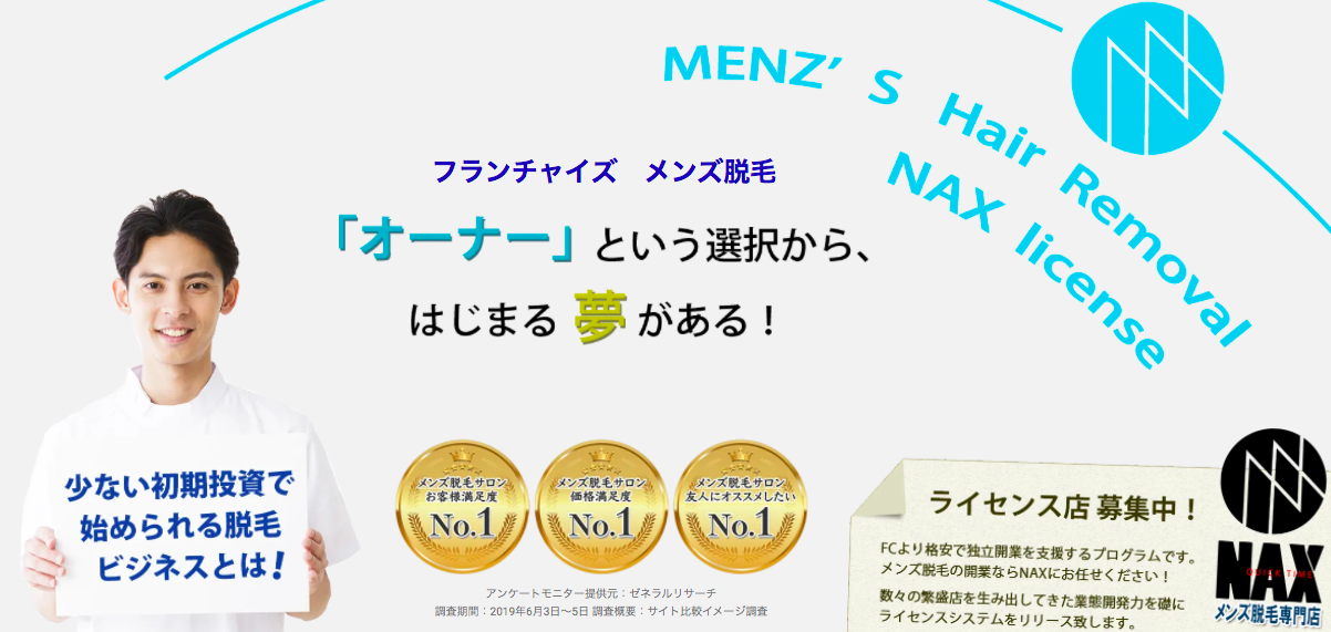 メンズ脱毛サロンの全国展開を行うメンズNAXのフランチャイズプランに新しいプランが登場!独立開業はメンズNAXにお任せ下さい!