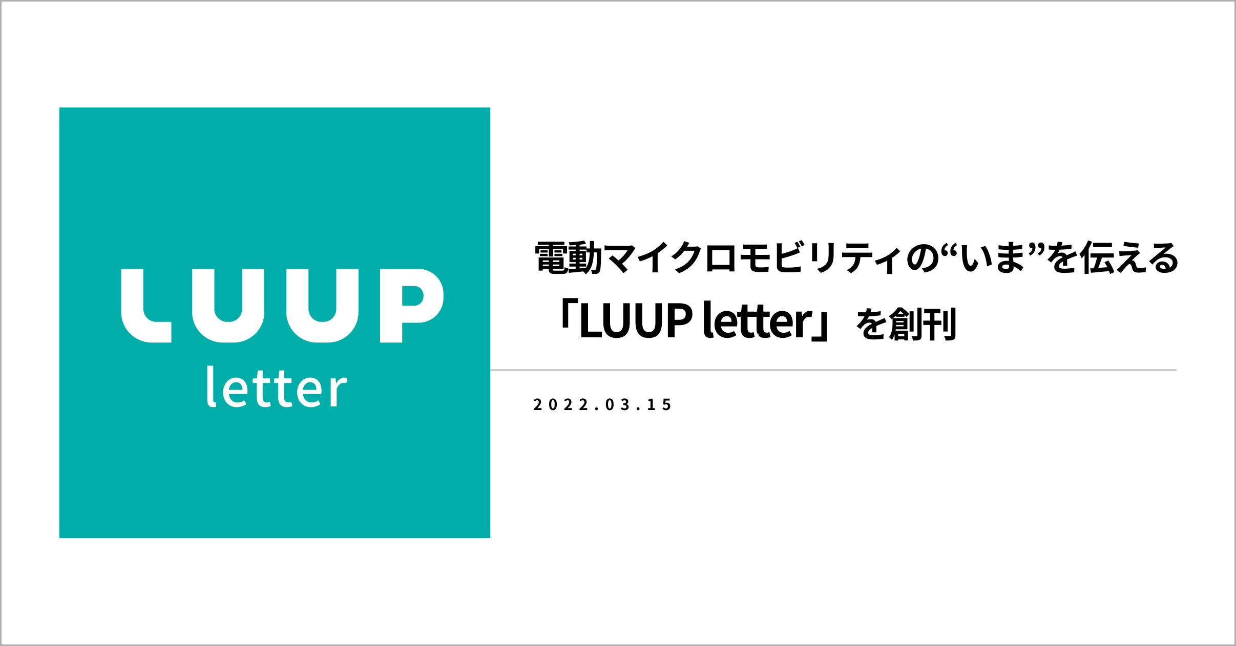 株式会社Luup(本社:東京都渋谷区、代表取締役社長兼CEO:岡井大輝、以下「Luup」)は、オウンドメディア「LUUP letter」(ループレター)を創刊しました。電動マイクロモビリティのシェアリングサービス「LUUP」を利用してくださるユーザーの皆さま、LUUPの発着点となるポートを設置くださるオーナーの皆さまに向けて、使い方やポート設置の流れなどをはじめとする、さまざまなコンテンツを展開してまいります。