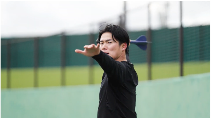 今回のCMでは、試合中の真剣な表情とは異なる、山本由伸選手が日々「トライ」している練習中の姿にフォーカスしています。