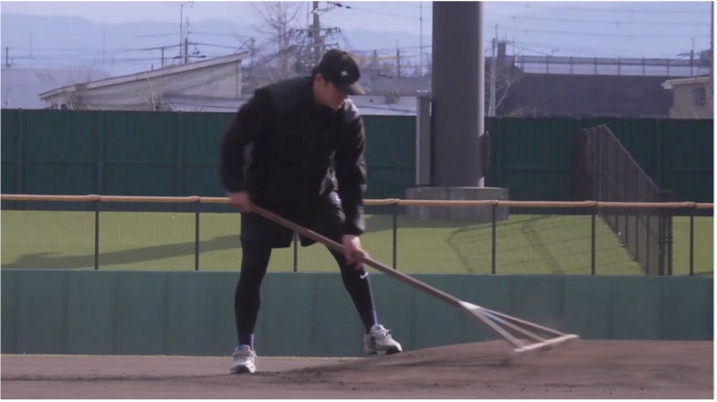 「まっすぐに、一歩ずつ。」というメッセージのもと、グラウンド整備や基礎練習、ピッチングといった日々の積み重ねが、大きな舞台での活躍につながっていることを描いています。