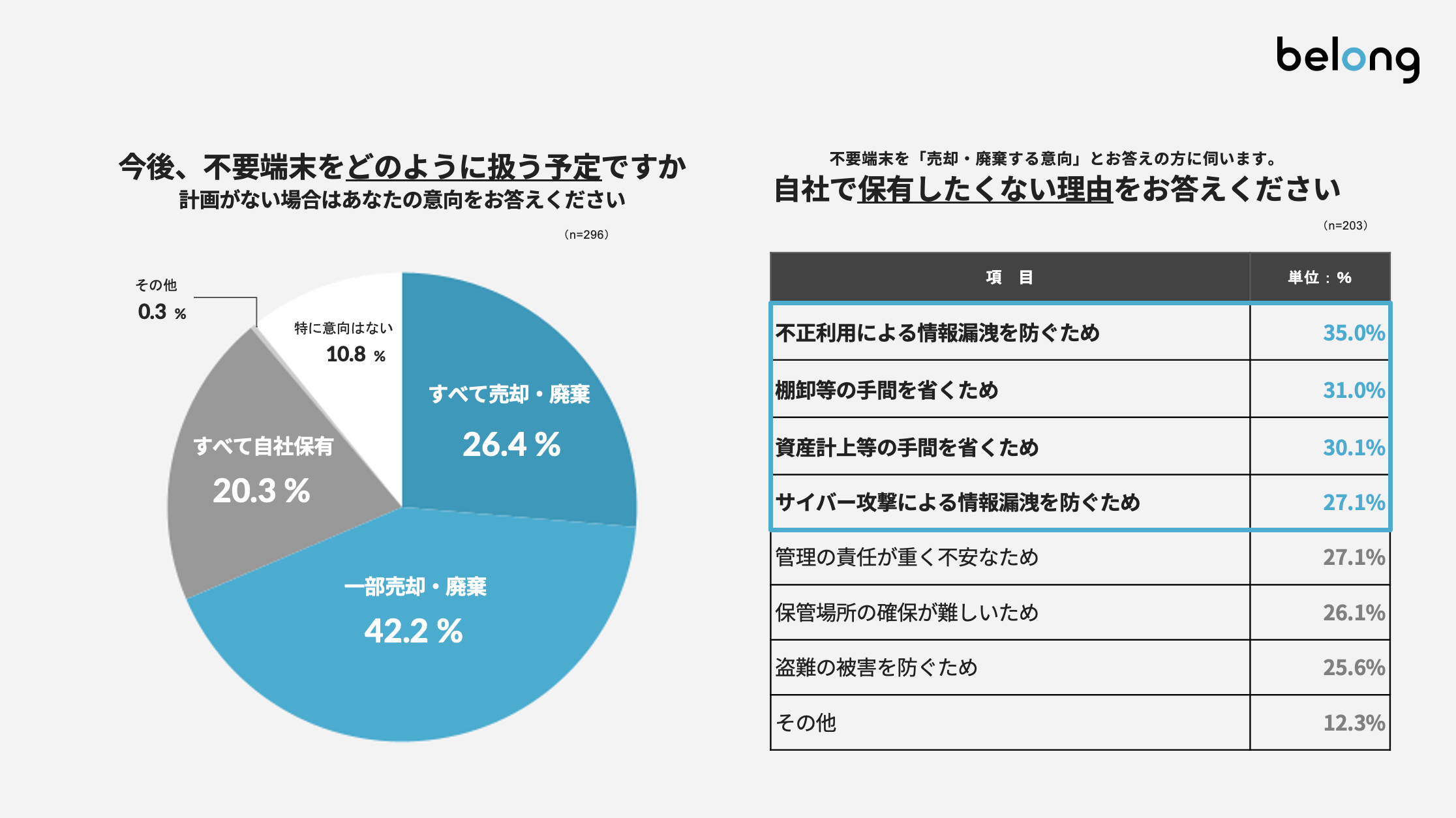 不要になった社用端末(パソコン・スマホ・携帯電話・タブレット)のずさんな管理体制が浮き彫りに 【伊藤忠グループのBelongによる「不要端末の管理における実態調査」】