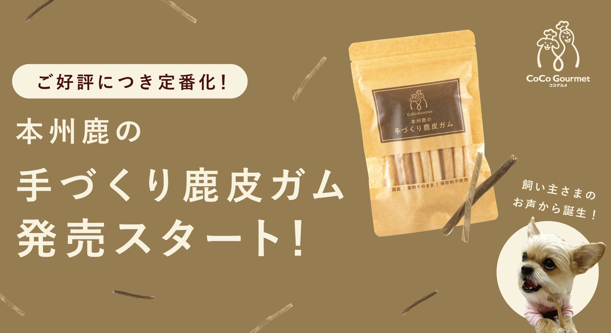 ココグルメ、SDGsに配慮した本州鹿の手作り鹿皮ガムを10月31日(木)より本発売