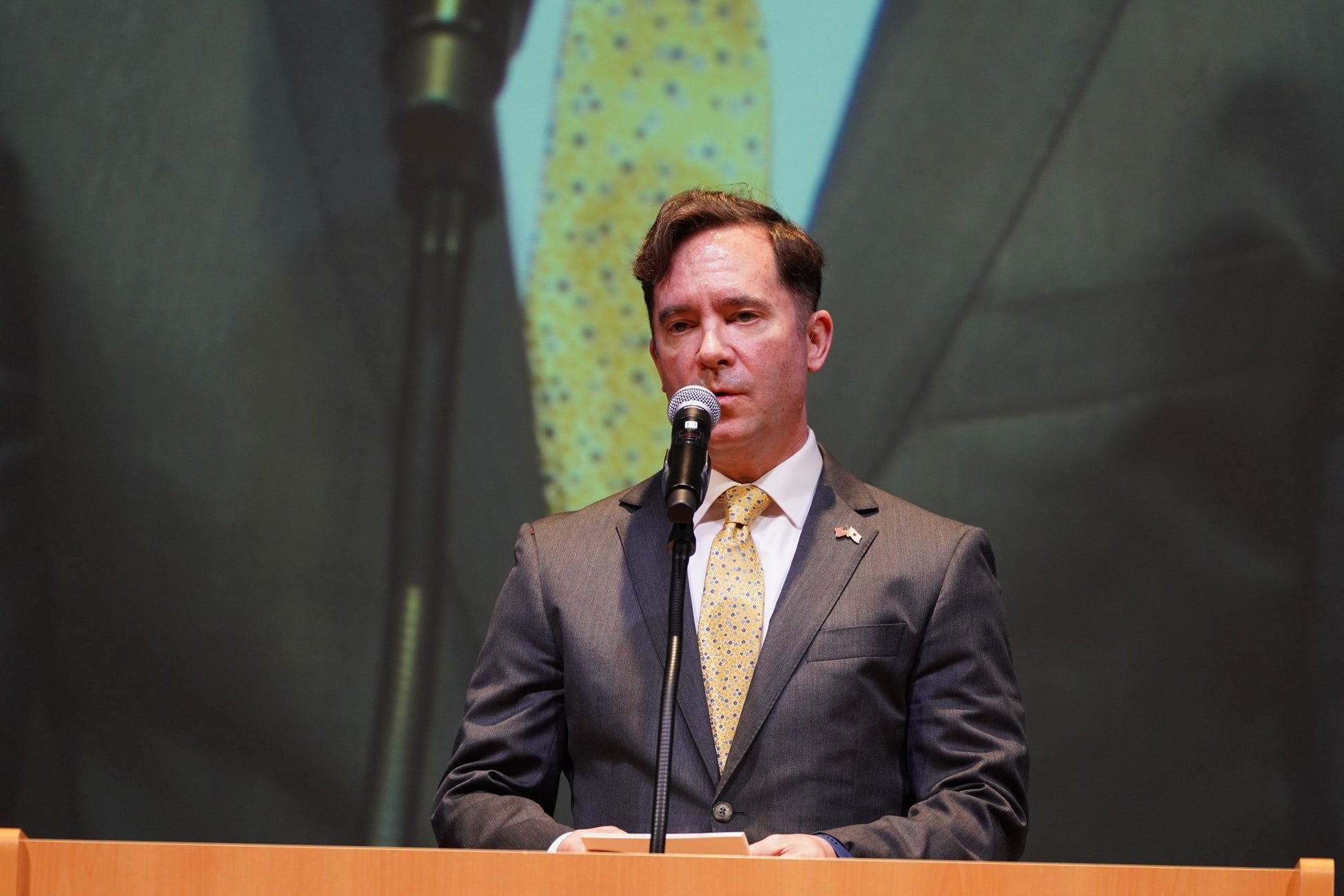ご来賓として、在福岡米国総領事館 政治・経済担当領事のRob Force氏が会場へお越しくださった他、熊本県の木村敬県知事も応援メッセージを届けてくださいました。熊本市のイメージキャラクター「ひごまる」と熊本県の営業部長兼しあわせ部長で世界で人気を博す「くまモン」もスペシャルゲストとして登場し、会場を盛り上げました。