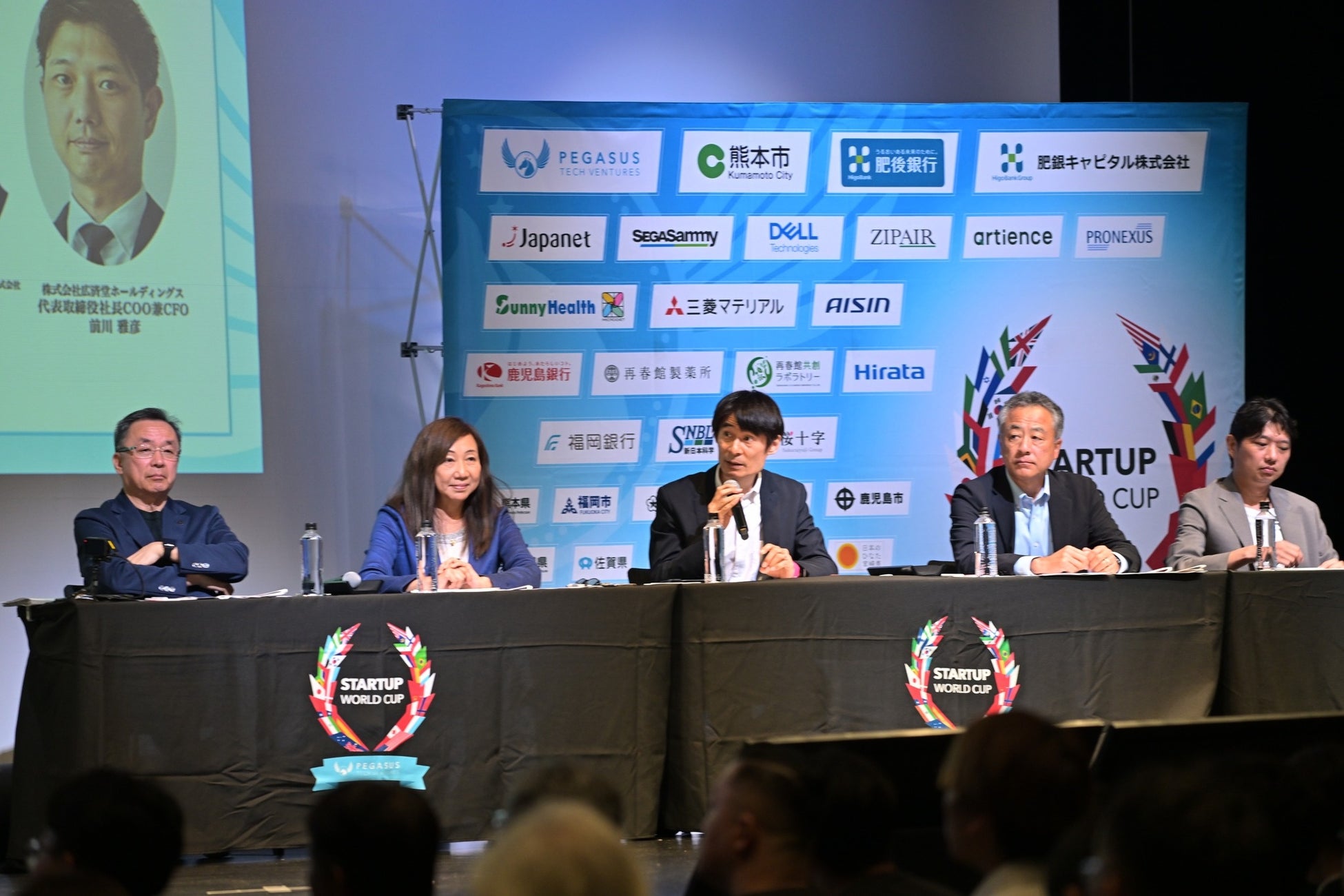 この九州予選には日本全国約100社を超えるスタートアップからご応募があり、当日は、厳正なる書類審査を通過したファイナリストが登壇し、熱いピッチを繰り広げました。各社の熱い思いが観客や審査員に届けられる中、見事優勝の座を獲得したのは、トイメディカル株式会社(本社:熊本県、代表者:竹下英徳氏、https://toymedical.jp/)です。同社は、独自開発の「塩分オフセット技術」やその技術を応用したプロダクト、その社会的価値が高く評価されました。同社は日本代表として、10月にサンフランシスコで開催されるスタートアップワールドカップ世界決勝戦に進出します。
