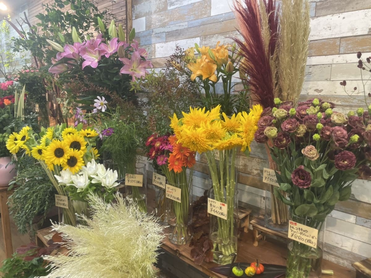 JR田端駅北口徒歩7分、業務用スーパーに隣接した店舗には季節を彩る生花から観葉植物、ドライフラワーを扱っています。豊島区・北区近郊の劇場等への配送も対応可能です。