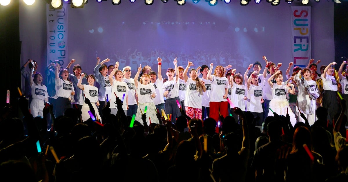 約1,000名のキャパを誇るLIQUIDROOMで開催し、総勢98名のミュージックプラネット参加アーティストがステージを鮮やかに彩りました。今回は1日二部公演の開催をし、ミュージックプラネット主催として過去最大規模の華やかなイベントとなりました。アーティストの皆さんから親しまれるMusic Planet+(ミュージックプラネットプラス)の公式楽曲から、今回のライブのために書き下ろされた最新楽曲まで、幅広いジャンルの楽曲を披露。観客側もリズムに乗りながらペンライトを振るなど、会場が一体となり大盛況のライブイベントとなりました。
