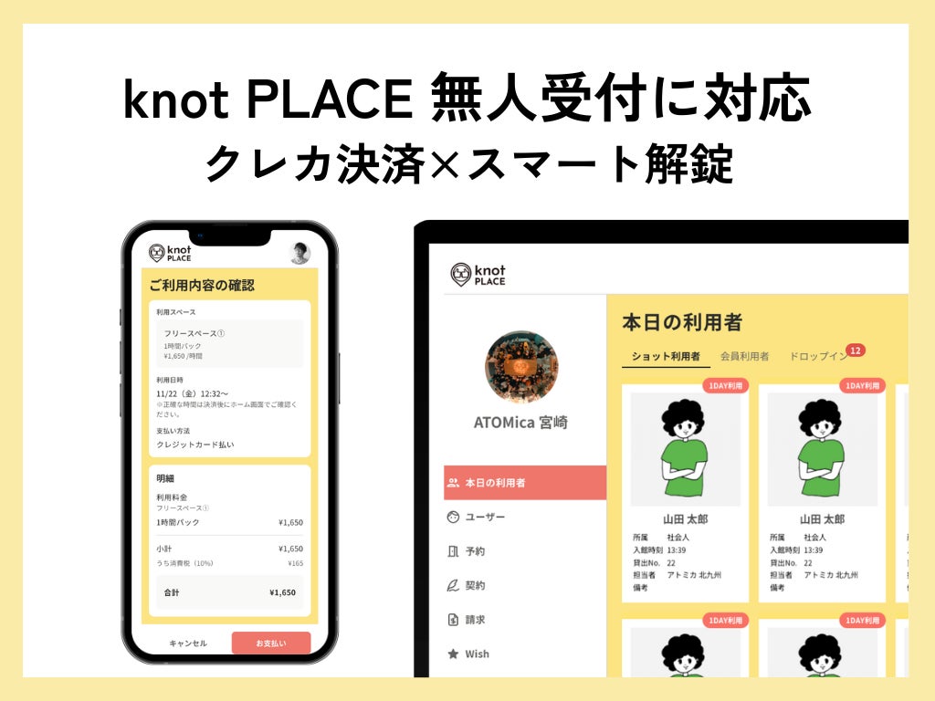 ソーシャルコワーキング®︎スタートアップの株式会社ATOMica(本社:宮崎県宮崎市、代表取締役:嶋田 瑞生、南原 一輝、以下「ATOMica」)は、コワーキングスペースの受付・管理ツール「knotPLACE(ノットプレイス)」にて、無人拠点における完全非対面での受付を実現する新機能をリリースしました。