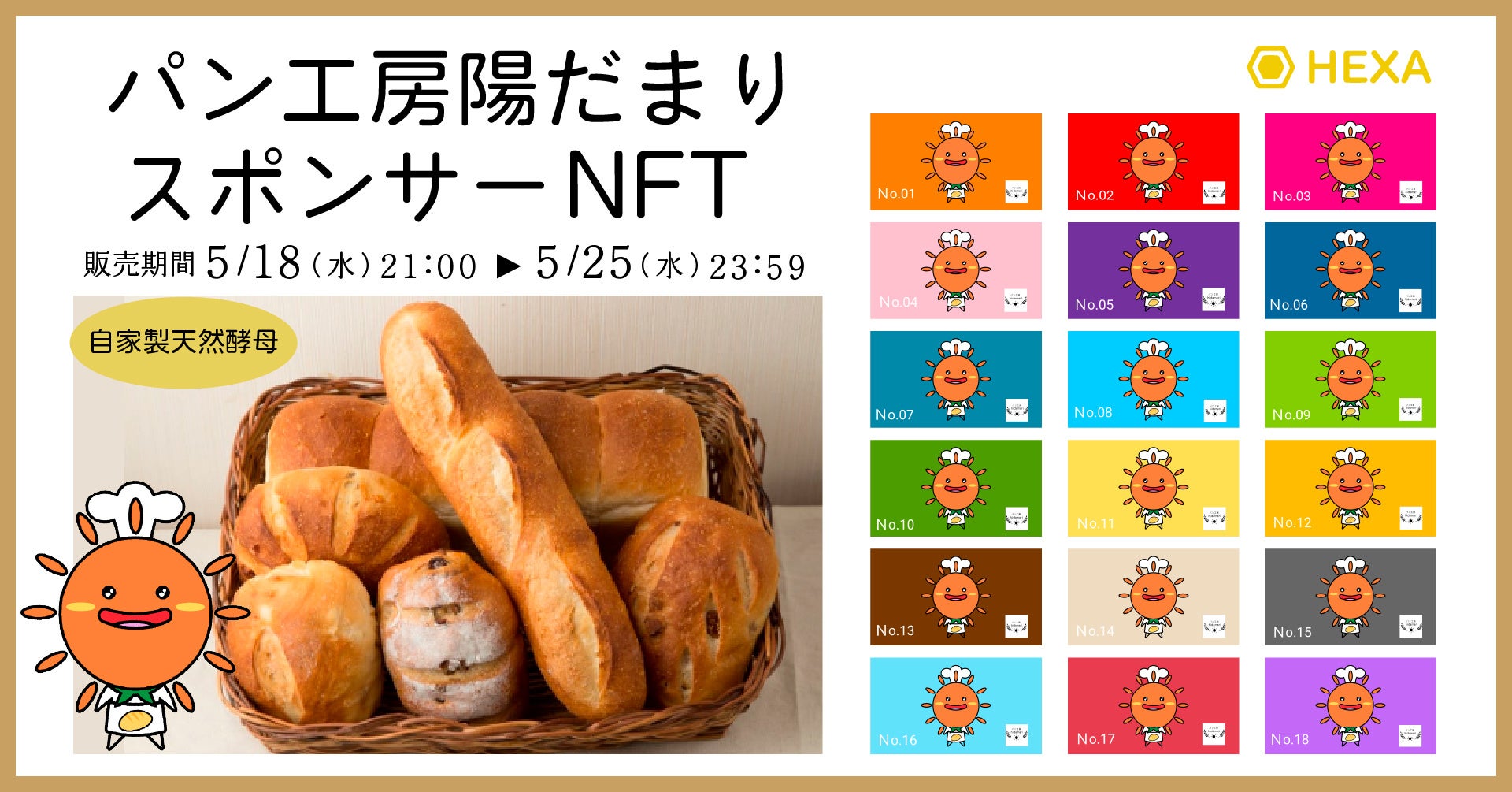 NFTマーケット「HEXA(ヘキサ)」では、福島県鏡石町の「パン工房陽だまり」スポンサーNFTを5/18(水)から販売します。
