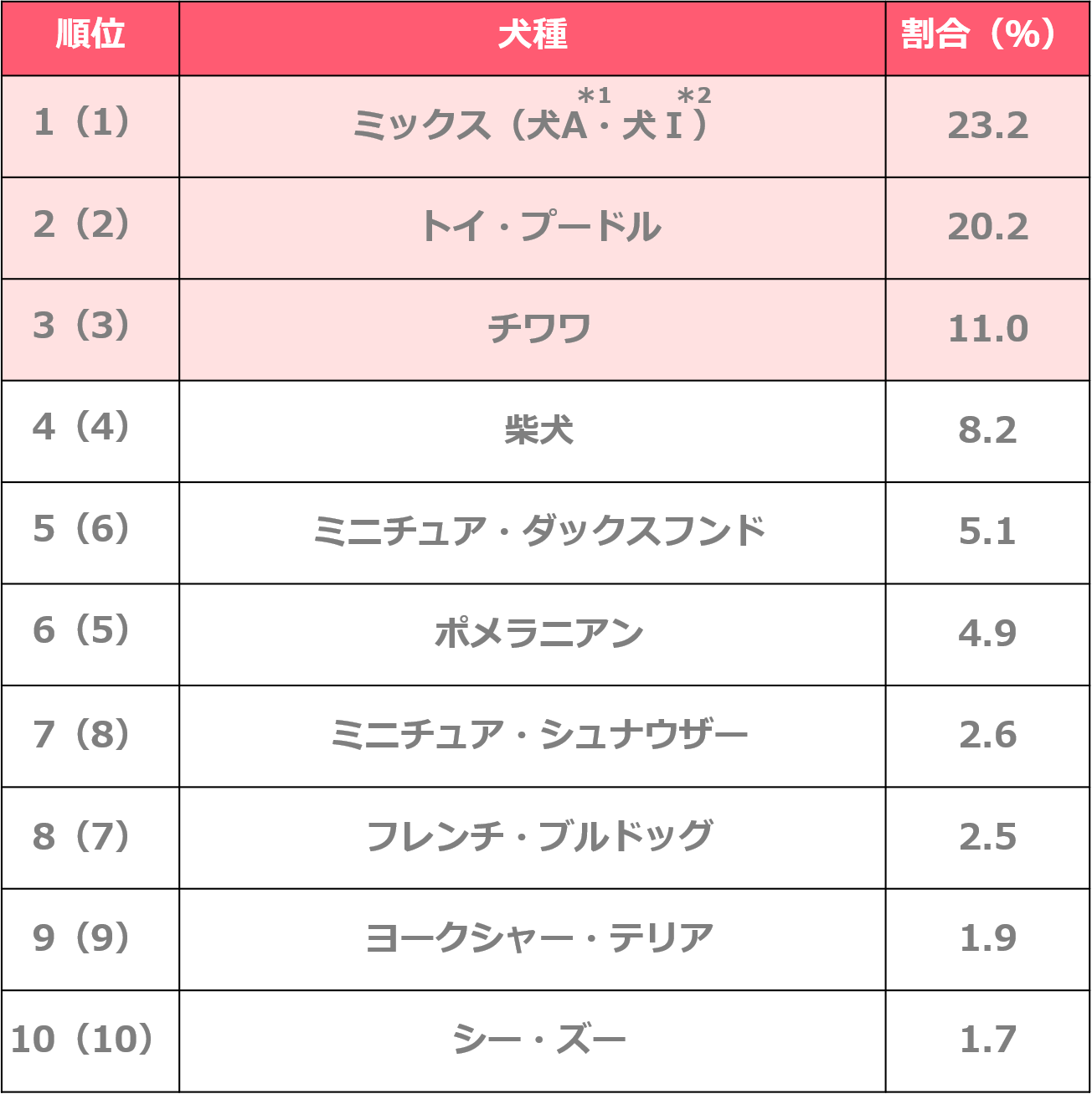 飼育犬種ランキングでは、2020年から3年連続で「ミックス」がトップとなりました。