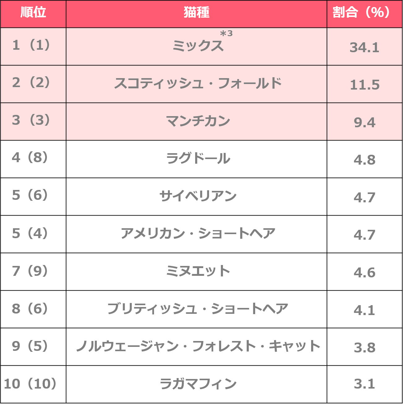 *³ ミックス:純血種同士を組み合わせている猫、日本猫、雑種の猫を含みます
