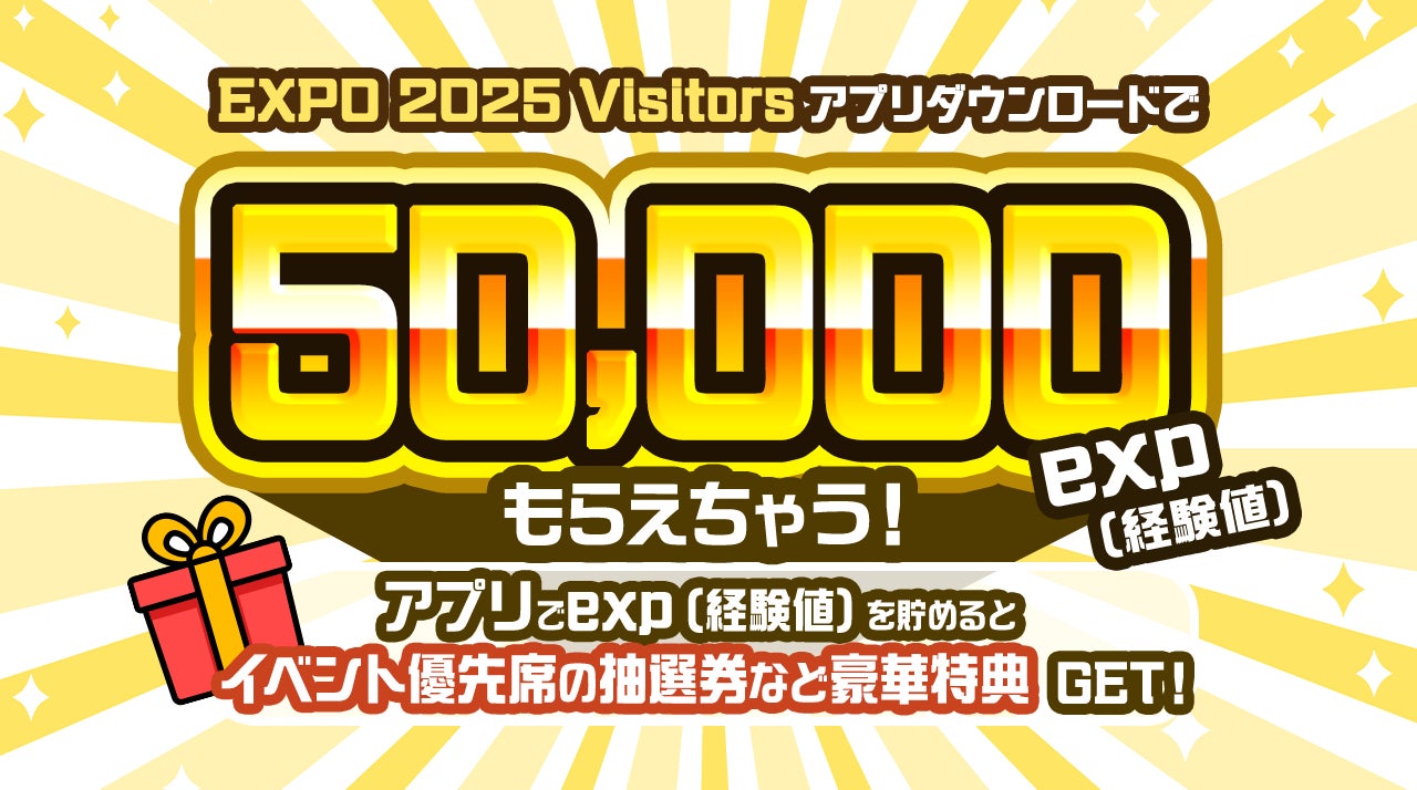 第1弾となる本キャンペーンでは、万博公式アプリ「EXPO 2025 Visitors」をダウンロードし、「EXPO2025デジタルウォレット」経由で記念SBT(Soulbound Token)を取得することで、万博会場で特別な特典が受けられる「ミャクミャクリワードプログラム」の経験値50,000expをプレゼントいたします。