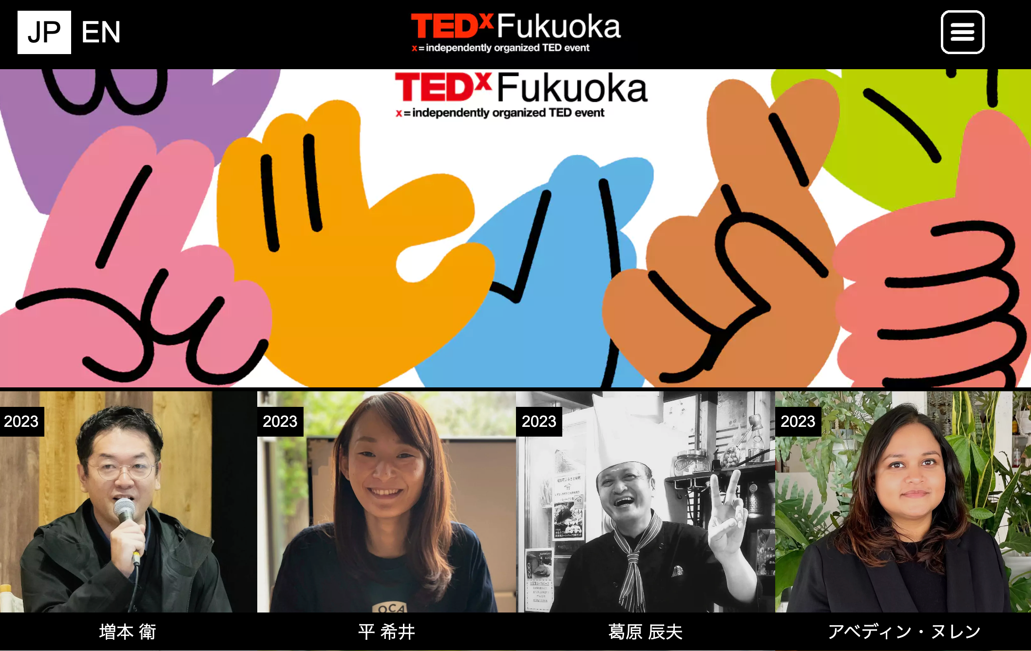 TEDxFukuoka(テデックスフクオカ)は、福岡および九州地域の人々が価値あるアイデアを交換する場を創出する ために、2012年にスタートしました。福岡から世界へ向けて魅力的で価値あるアイデアを発信するとともに、世界 の模範となるアイデアを福岡から発信しています。 また、スピーカー、ボランティアスタッフ、参加者が一体とな り、福岡の文化的雰囲気の醸成に貢献しています。