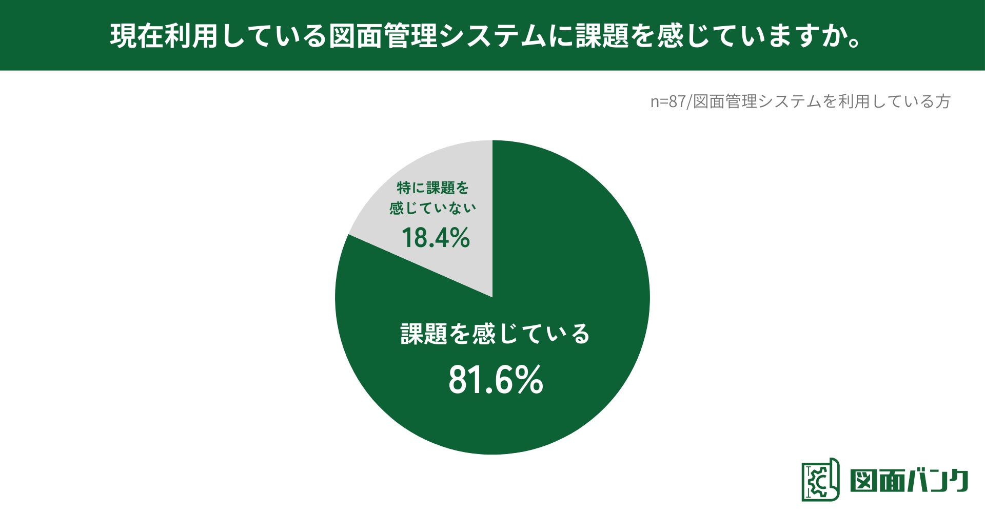 現在利用している図面管理システムに課題を感じているか尋ねたところ、約8割が課題を感じていることがわかりました(n=87/図面管理システムを利用している方)。