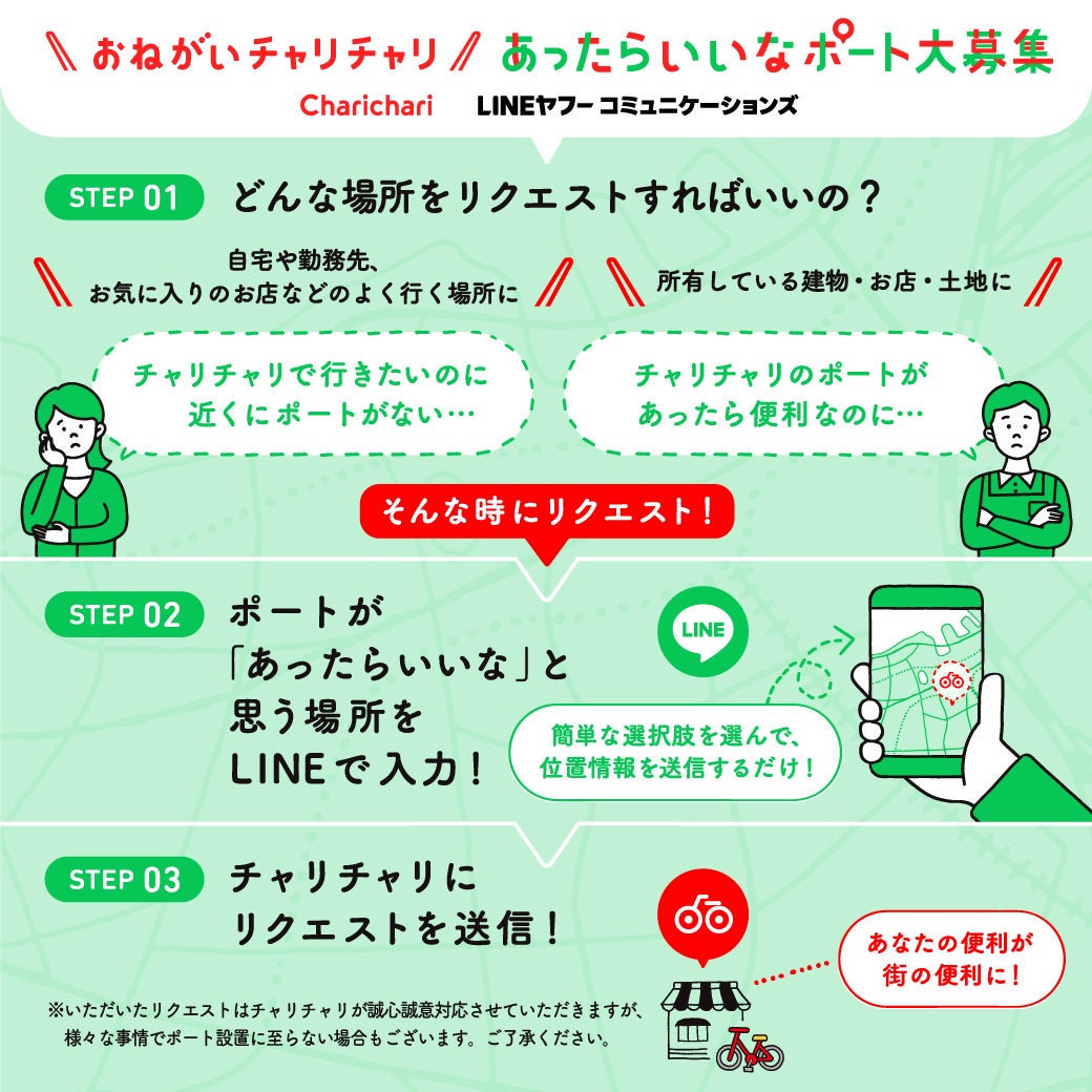 チャリチャリ×LINEヤフーコミュニケーションズの協働プロジェクト「おねがいチャリチャリ!“あったらいいなポート”大募集」