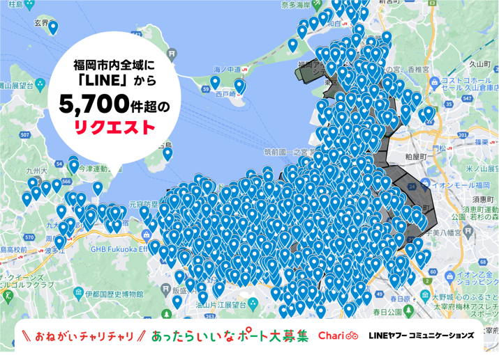 ・福岡のチャリチャリ駐輪ポート新設に 「LINE」アプリを通じて市民から5,000件超のリクエスト。市民共創のポート開設を記念したプレゼント企画を実施