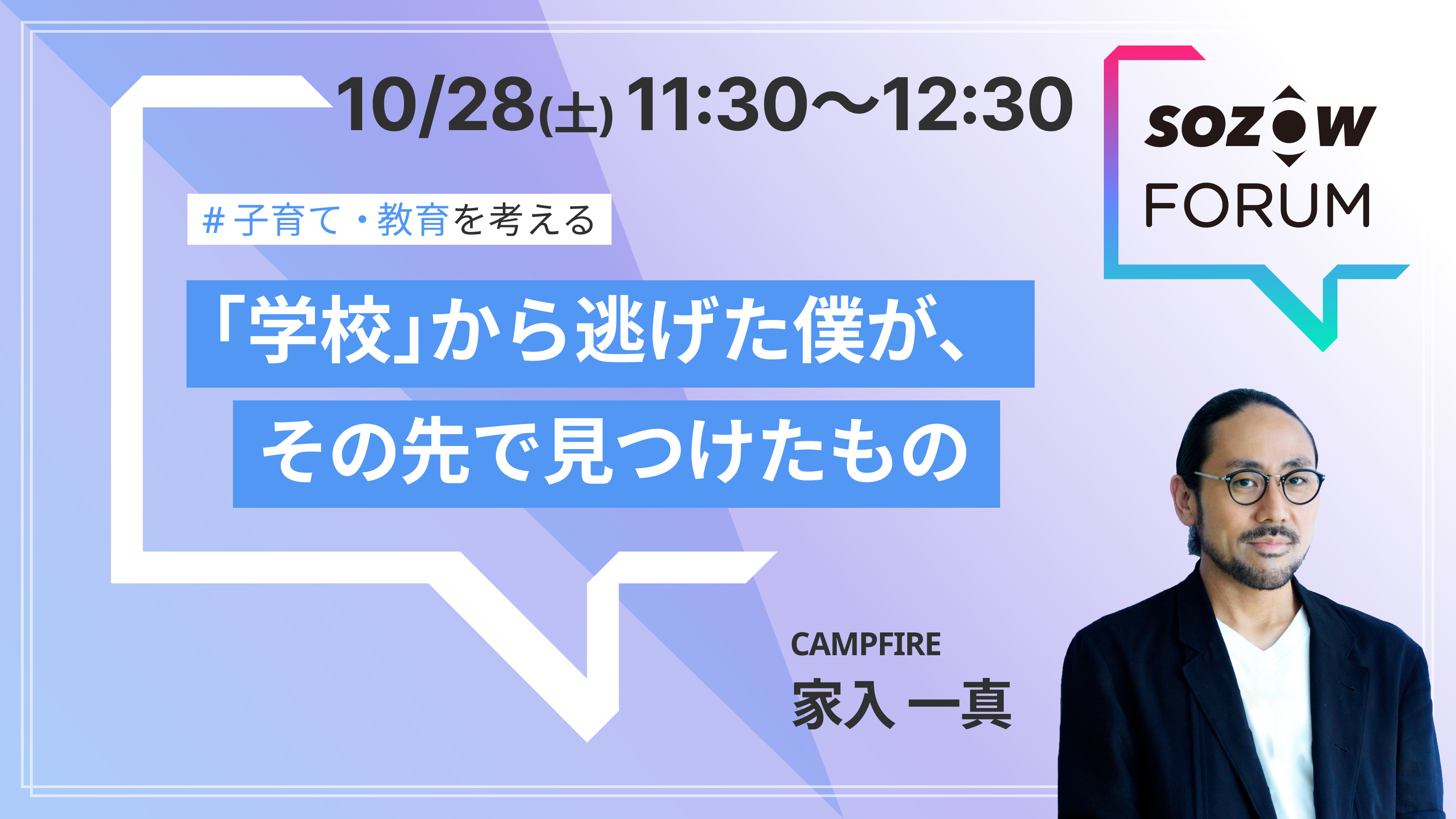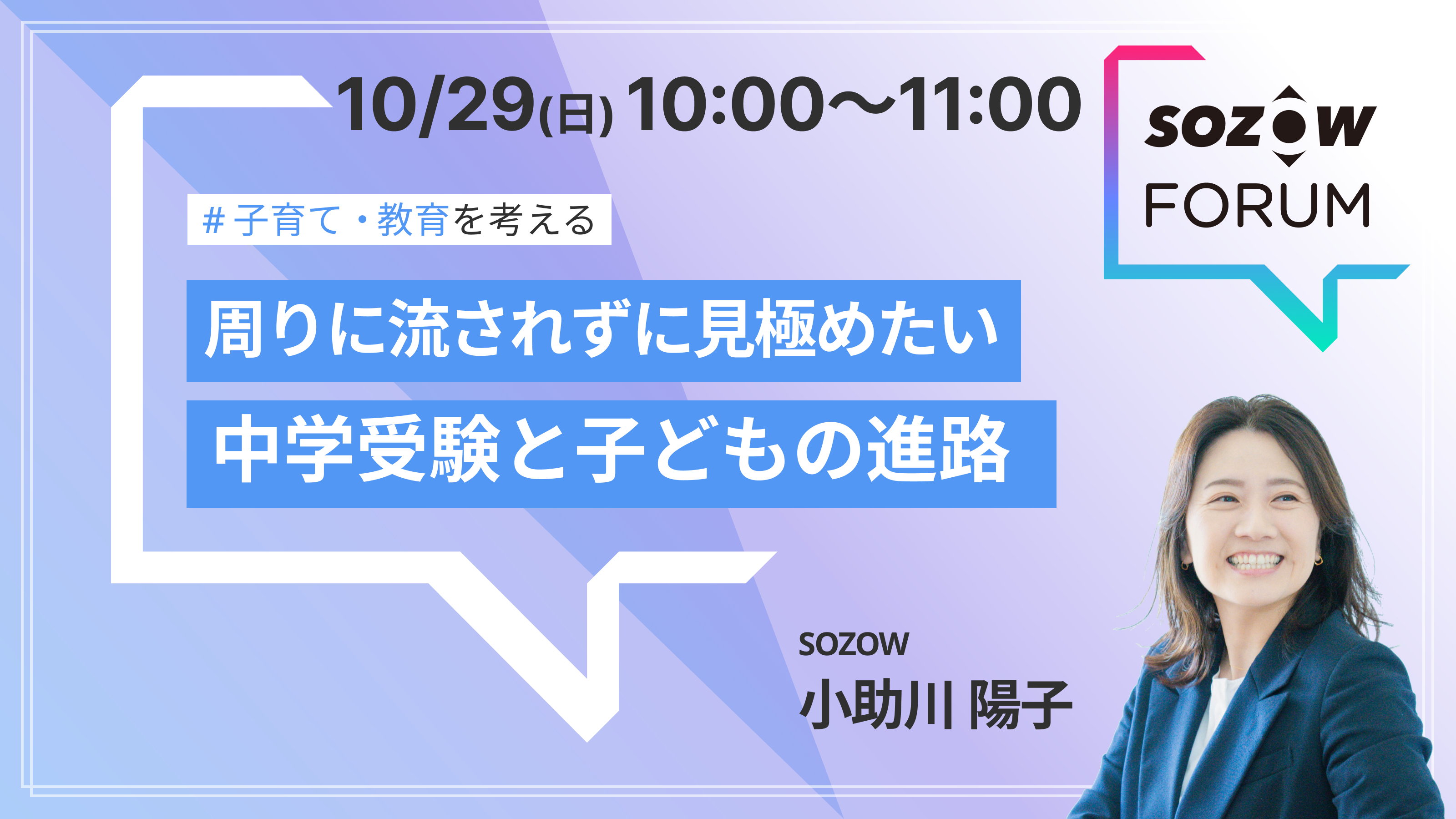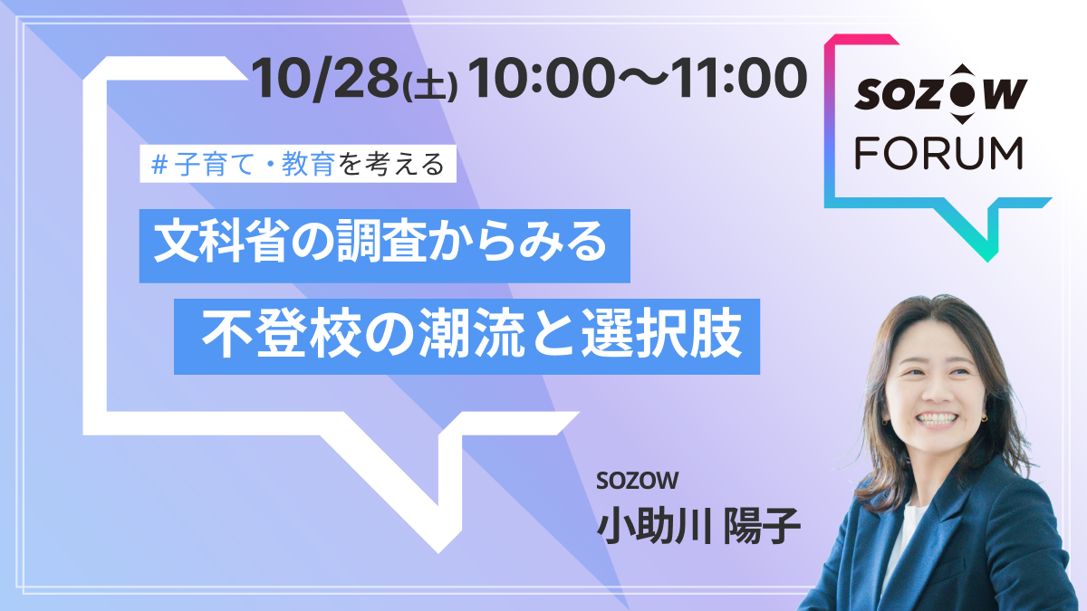 【不登校、過去最高の29万人超】「不登校の子どもの進路」「受験」などテーマにオンラインセミナー「SOZOW FORUM」を10月28日(土)、29日(日)開催