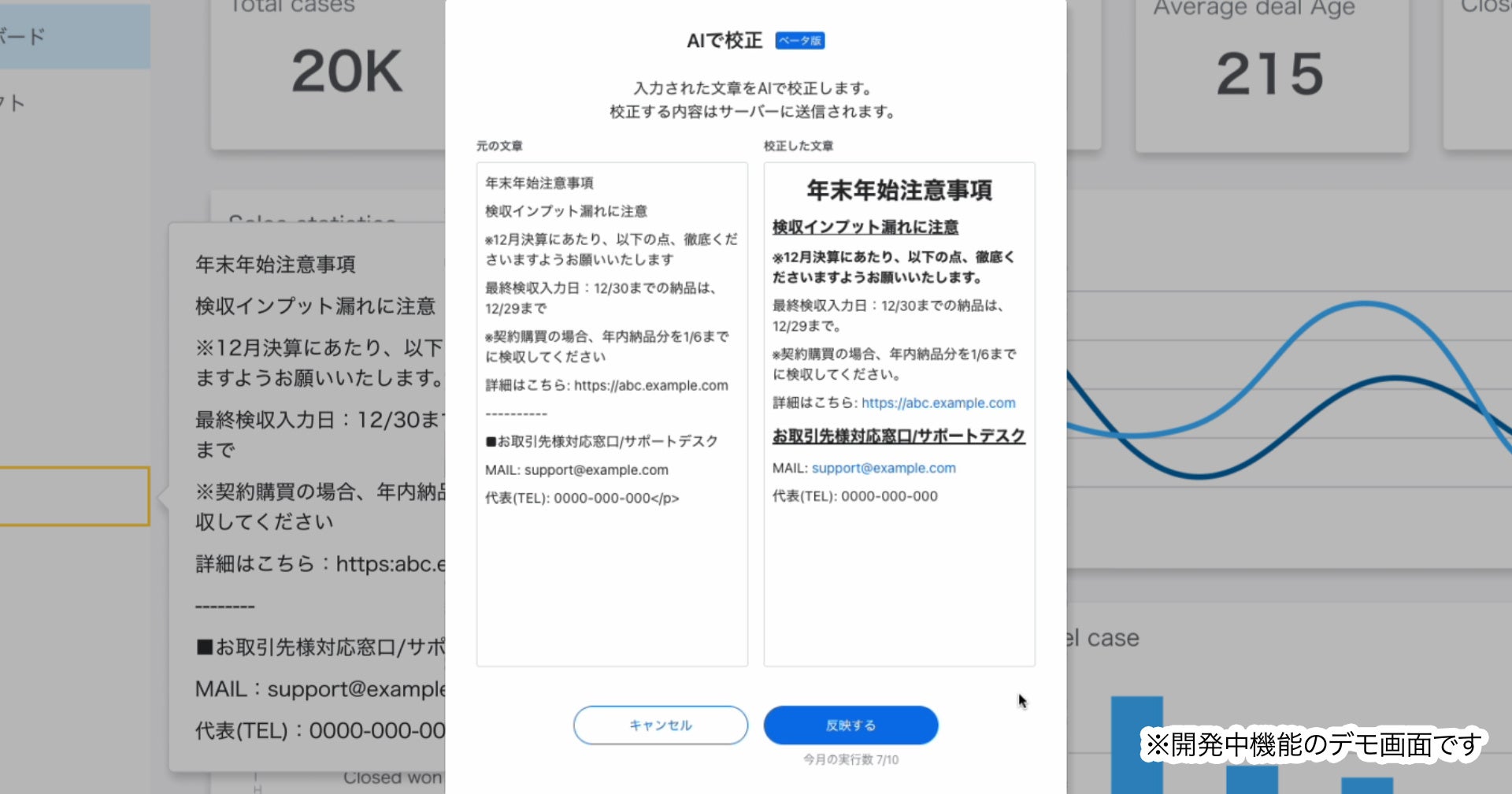 このたびの「テックタッチ AIレビュー」は、ユーザーが入力したナビゲーションの内容を、ChatGPTを利用し、自動で編集/校正する機能です。本機能の利用により、ナビゲーション作成時の編集/校正作業への所要時間を大幅に削減でき、ユーザーは効率的にガイド・ナビゲーション作成作業を行うことができます。