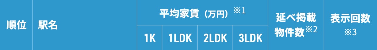 ※3 2023年1月1日~2023年6月30日で、ニフティ不動産のWEBサイトとアプリで賃貸物件検索の際に閲覧された物件が存在する駅の表示数を元に集計