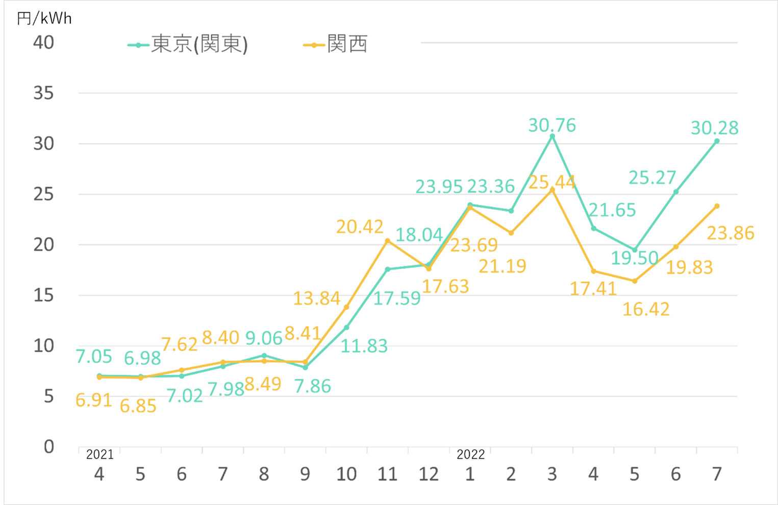ロシア・ウクライナ情勢による燃料価格の上昇、今夏の電力ひっ迫などの影響を受け、卸市場価格は依然高値で推移しています。本来、再エネ電源の発電コストは燃料価格の影響を受けませんが、固定価格買取制度によって発電されたFIT電気は国の制度によって仕入れ価格が卸市場価格と連動しています。