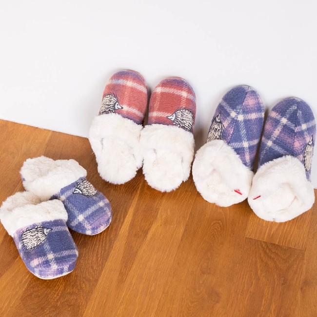 起毛されたチェック柄がほっこり温かい雰囲気のスリッパ。かかとのないナポレオンタイプと通常スリッパタイプがあります。甲の部分も中敷もふわふわとしたファーなので、置いておくだけでも温かい気分になれそう。カラーは、ピンクとパープルの2色をご用意。
