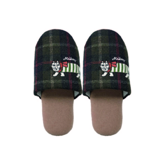 マフラーを巻いておしゃれをしたマイキーのソフトスリッパです。底もやわらかいので、歩いてもパタパタと音が立ちにくいのが嬉しいポイント。同系色のタータンチェック柄が、季節感をより感じさせてくれるデザインです。カラーは、レッド・イエロー・ベージュ・ブラウンの4色をご用意。