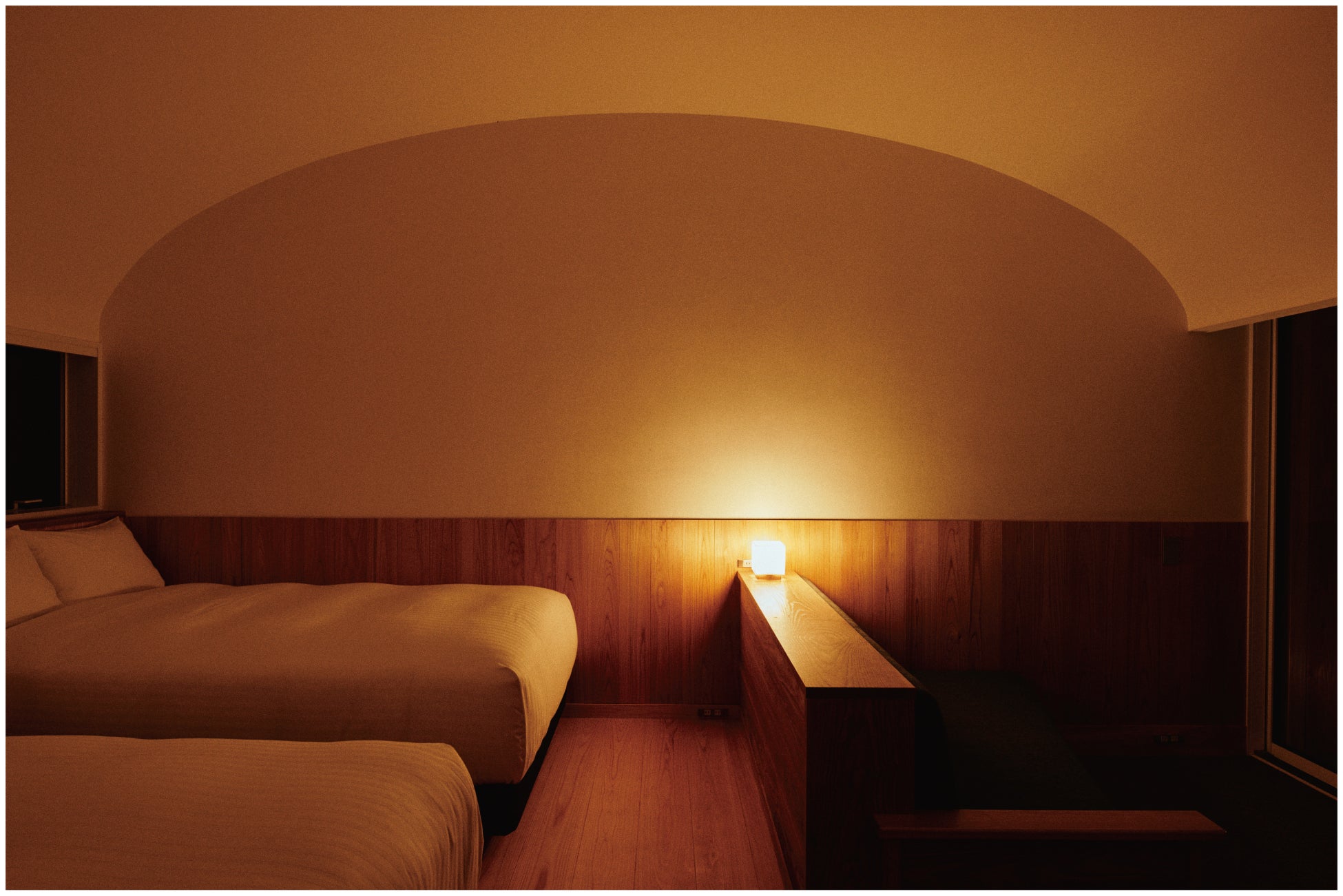 テラスに繋がる窓を閉めると、深い静寂に包まれる客室。白いボールト天井のあたたかな繭の中に包まれるような感覚の中、安心してゆっくりとおやすみください。