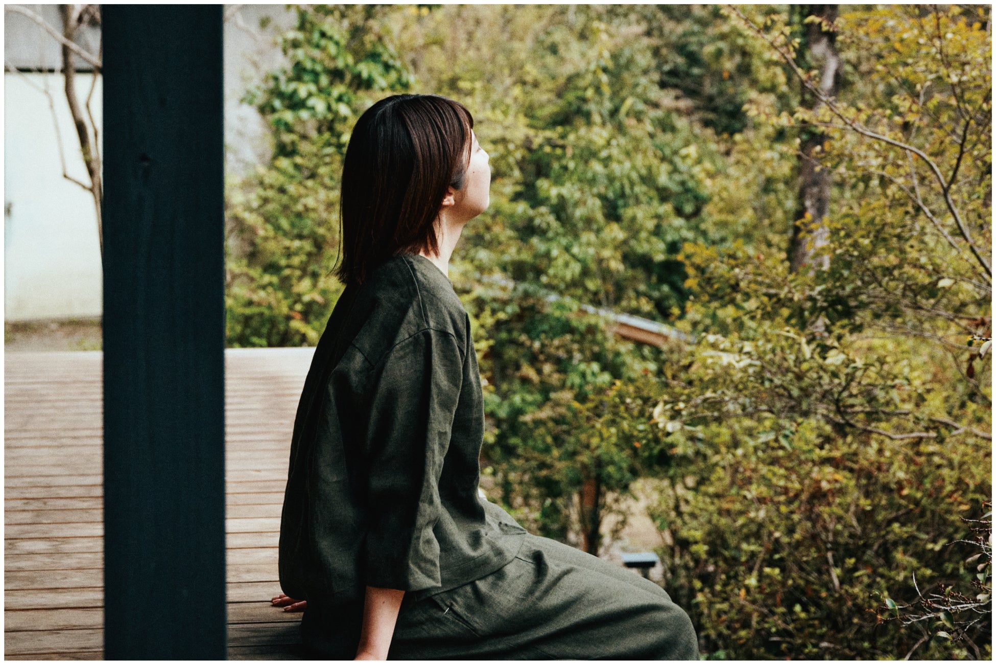 部屋のお風呂では、窓の外の自然を眺めてゆっくりとリラックスした入浴をお楽しみいただけます。また、直接テラスにも出られるようになっており、多摩川の流れを聞きながら自然を感じる時間を過ごすことができます。その後は快適かつ、スタイリッシュに見えるシルエットを念頭にデザインされた、オリジナルの滞在着に着替えて、心身を奥多摩モードに。