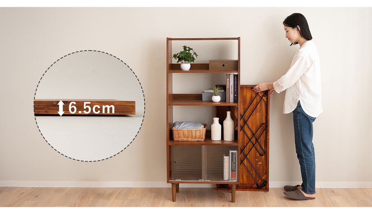 使用しない時は折りたたむことで約6.5cmの厚みになります。ソファの下や収納ラックの裏など、たった8cmの隙間にスッキリ収納可能。圧迫感をなくし、部屋を広く使えます。