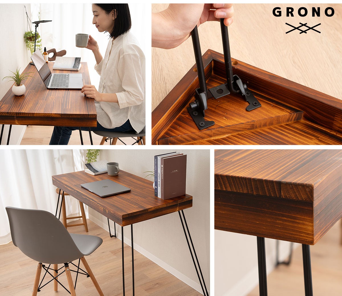 限られたスペースを有効活用できる、折りたたみ式デスク「GRONO/グローノ」が新発売!!天然木のナチュラルなデザインでインテリアにも馴染みやすいです。