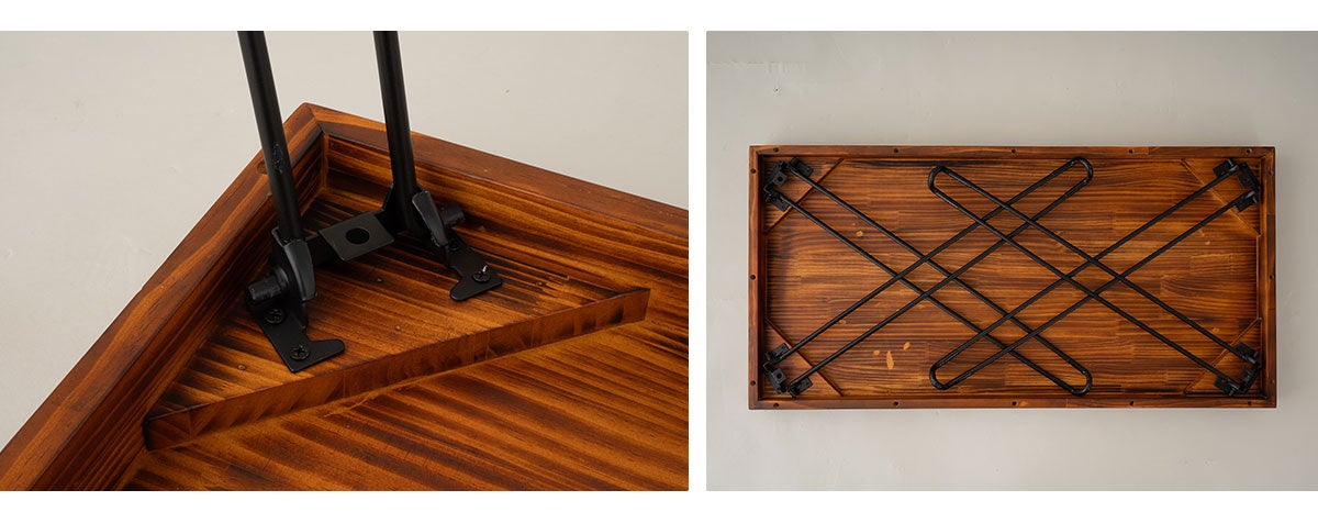収納時にすべての脚が天板裏に収まるコンパクト設計。収納したいときにスッキリと収まる、使い勝手にこだわりました。
