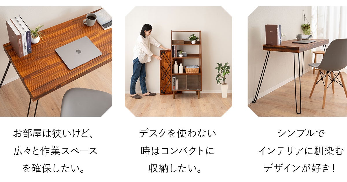 ワークスペースを広く取りたい、でも使わないときは部屋を圧迫してほしくない、そんな希望を両立する折りたたみデスクを、流通経路を最短にすることで、16,990円(税込・基本送料込)と取り入れやすい価格で実現しました。
