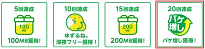 - 2.「ゆずるね。」20回達成時の「パケ増し」