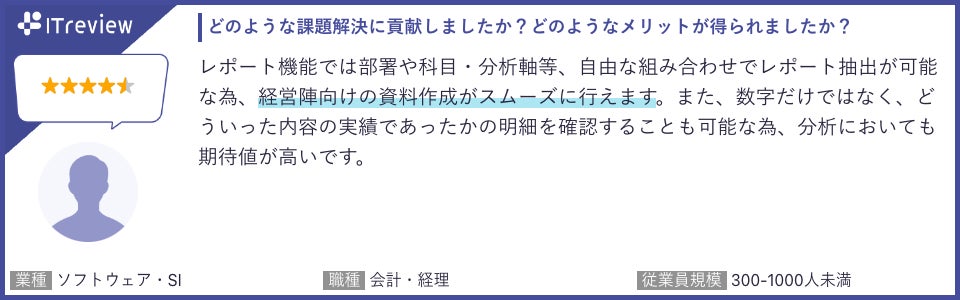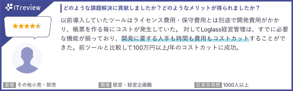 ▽「Loglass 経営管理」のご利用企業様からは、ITreviewにて以下のようなレビューをいただいています。(一部抜粋)