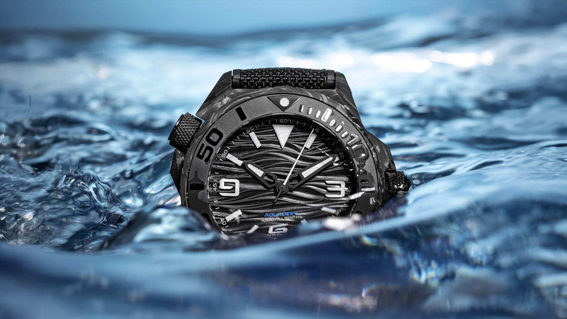 黒潮の流れをイメージした波状文字盤(レーザー彫刻)