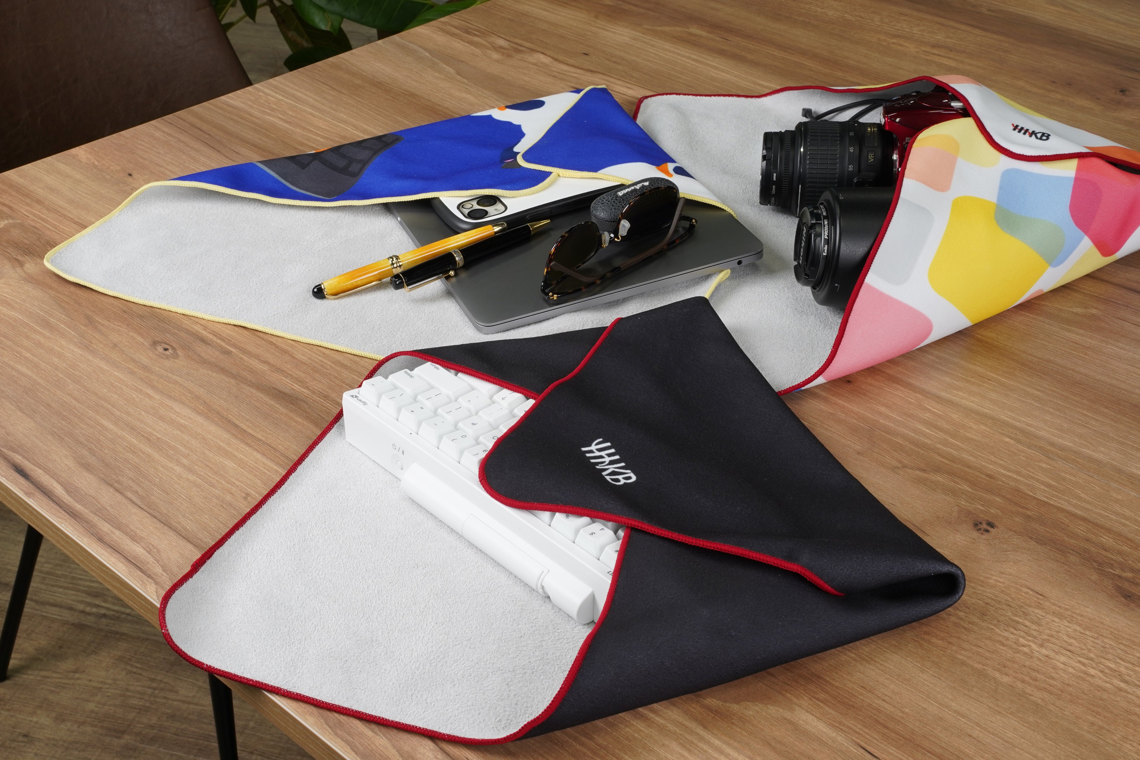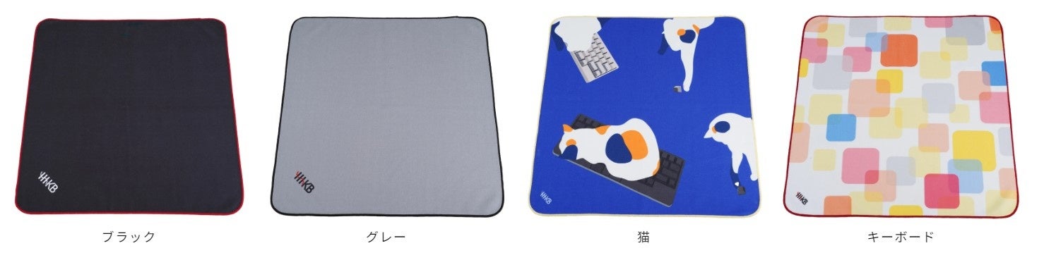 普段使いしやすいシンプルなデザインに加え、HHKBに関連した個性的なデザインをご用意しました。キーボードとパームレストをまとめても充分に包み込める汎用性の高いサイズ(縦・横45cm)を採用しました。