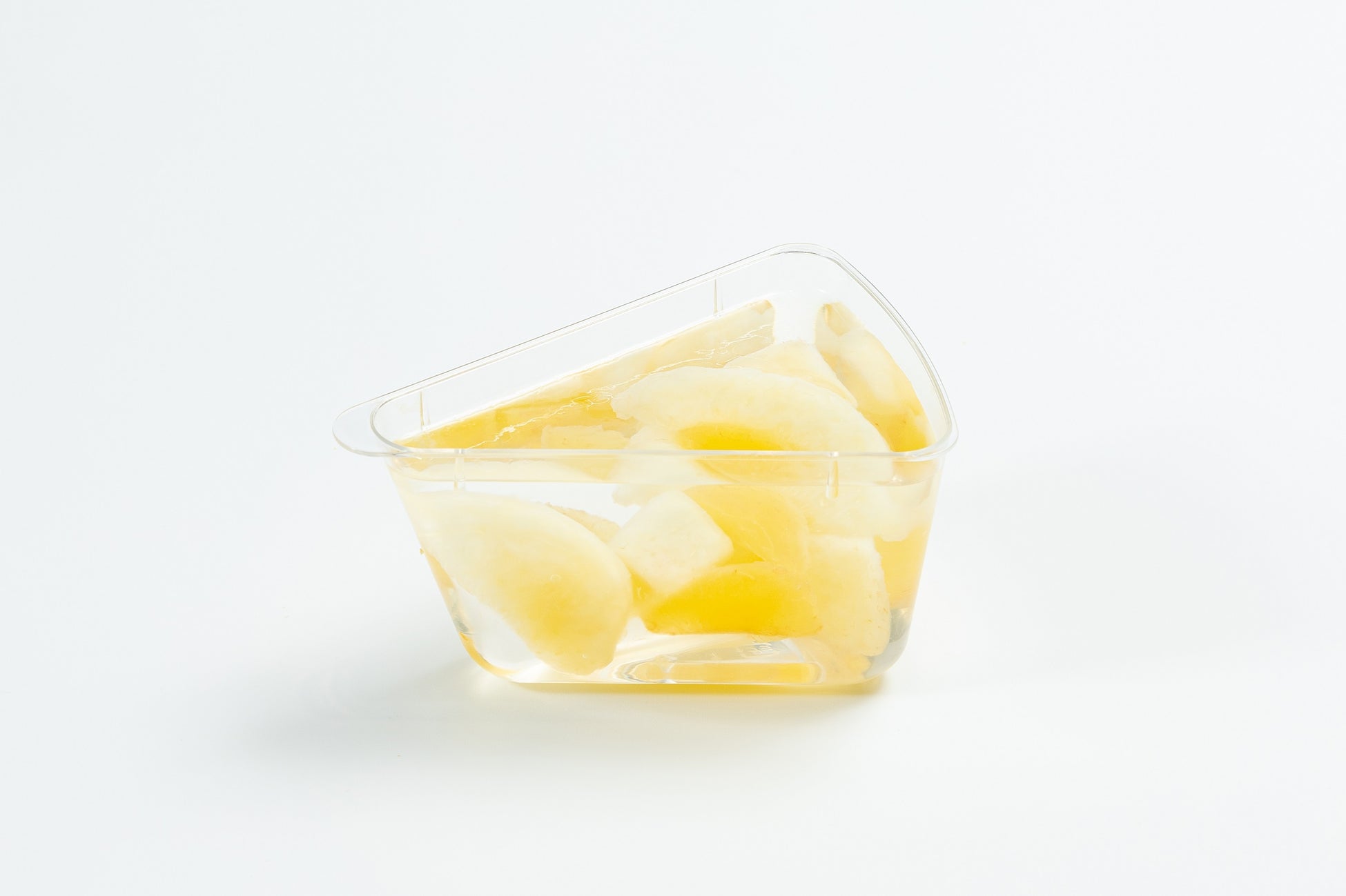 カフェ併設店限定で販売する『まるごと桃パフェ』は、フルーツピークスが年間で販売する季節限定パフェの中で最も人気の高いパフェです。毎年約2万食を販売しており、昨年は2万3千食と過去最高の販売数となるなど、年々口コミが広がり人気が上昇しています。まるごと桃を1玉トッピングしたグラスの中には、桃と相性抜群のバニラアイスやのどごしの良いぷるるんとした食感のゼリー、さらにカットされた桃がゴロゴロと入っています。今年は桃の使用量が1玉から1.5玉へとボリュームアップし、例年よりさらに桃を楽しめる、“桃づくし”のパフェに仕上げています。