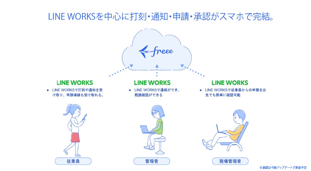 「チャットで勤怠(freee勤怠管理)」:https://www.freee.co.jp/lp/hr/resources/lineworks/