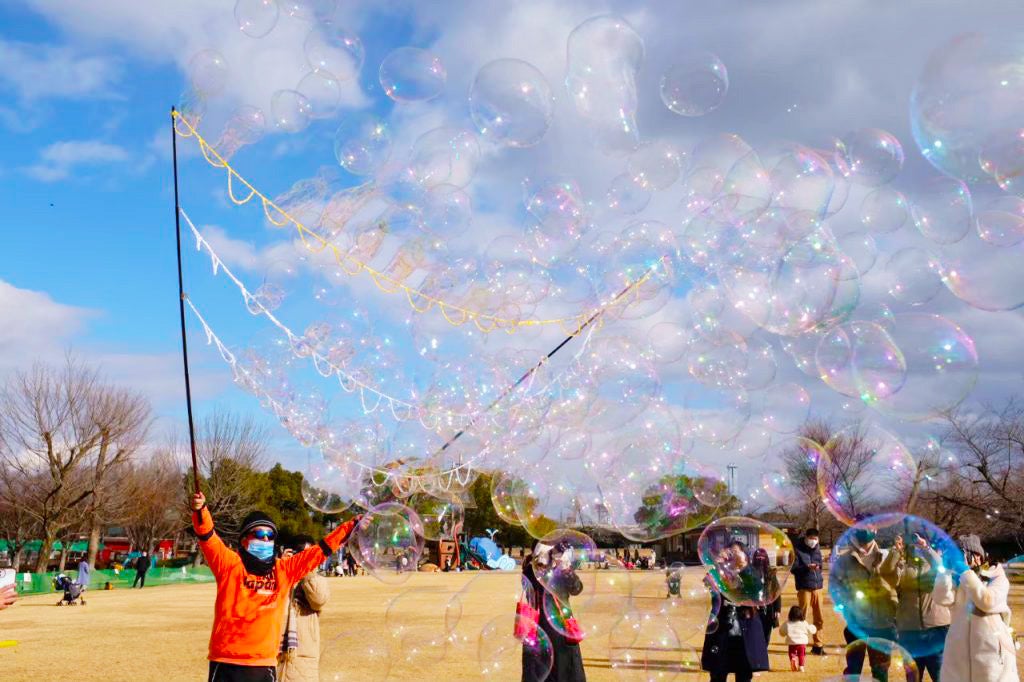 大きなシャボン玉や、シャワーのようなシャボン玉を楽しもう!