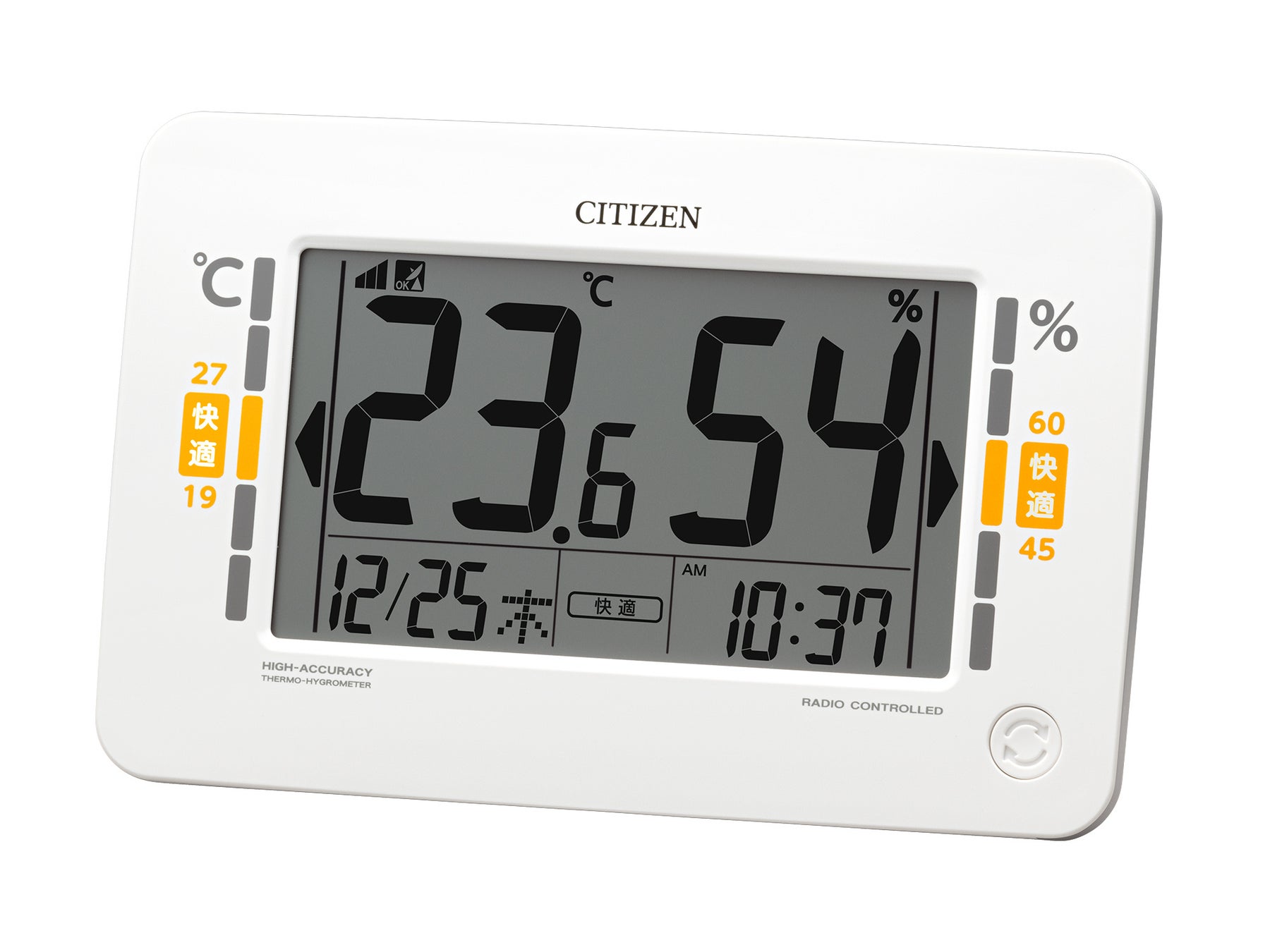 毎日の体調管理に役立つ環境目安表示付きの高精度デジタル温湿度計に掛置兼用モデルが登場!