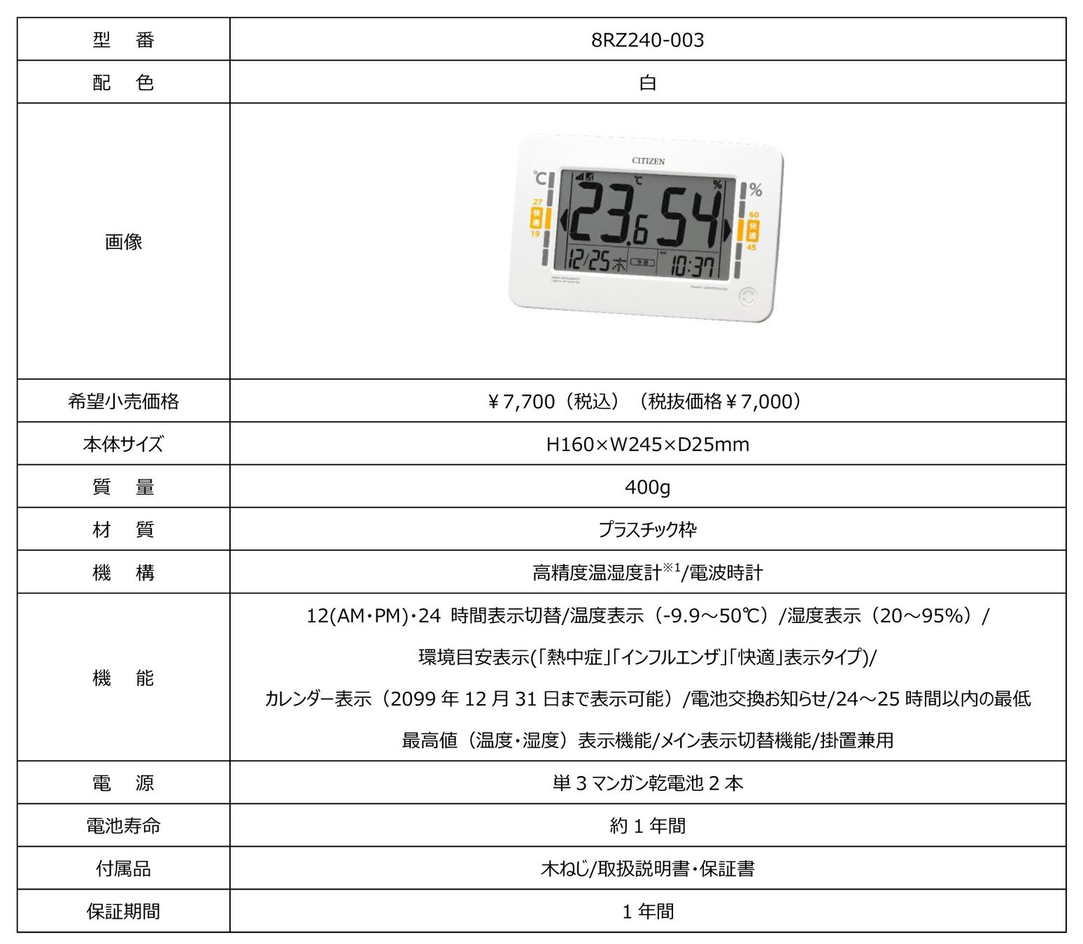 リズム株式会社(取締役社長 湯本武夫)は、毎日の体調管理に役立つ環境目安表示付きの高精度デジタル温湿度計「8RZ240-003」を5月上旬より発売いたします。