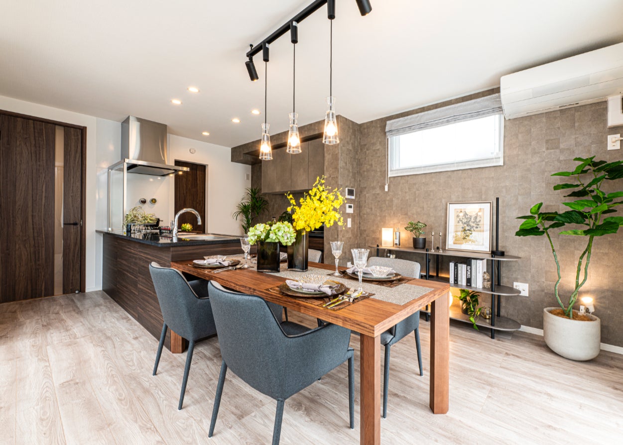 メインターゲットである子育て共働きファミリーの理想を叶える住まいを実現しました。プランニングにおいては、リビング・ダイニングを家族団欒の中心となるよう設計。居室形状やサッシ計画に工夫を凝らし、明るく開放的な空間にすることで、自然と家族が集まる場所を創出しています。加えて、家事効率を向上させる動線計画を積極的に導入し、限られた時間を有効に使えるよう配慮。日々の暮らしにゆとりを生み出します。その他、カウンターコーナー、DEN、大型収納など多彩なプランバリエーションを用意し、家族構成やライフスタイルに合わせた最適な住まいを選べます。また、設備仕様も充実。キッチン・洗面の自動水栓、インターホン連動玄関電子錠、宅配ボックスに加え、プライバシーと防犯性を高める門扉も標準装備。暮らしの利便性と安心感を高める先進設備が標準仕様です。街区計画については、全9棟の街並みに外構計画で繋がりを創出し、夜間の照明計画にも配慮。コミュニティ意識を育み、安心・安全な暮らしをサポートします。