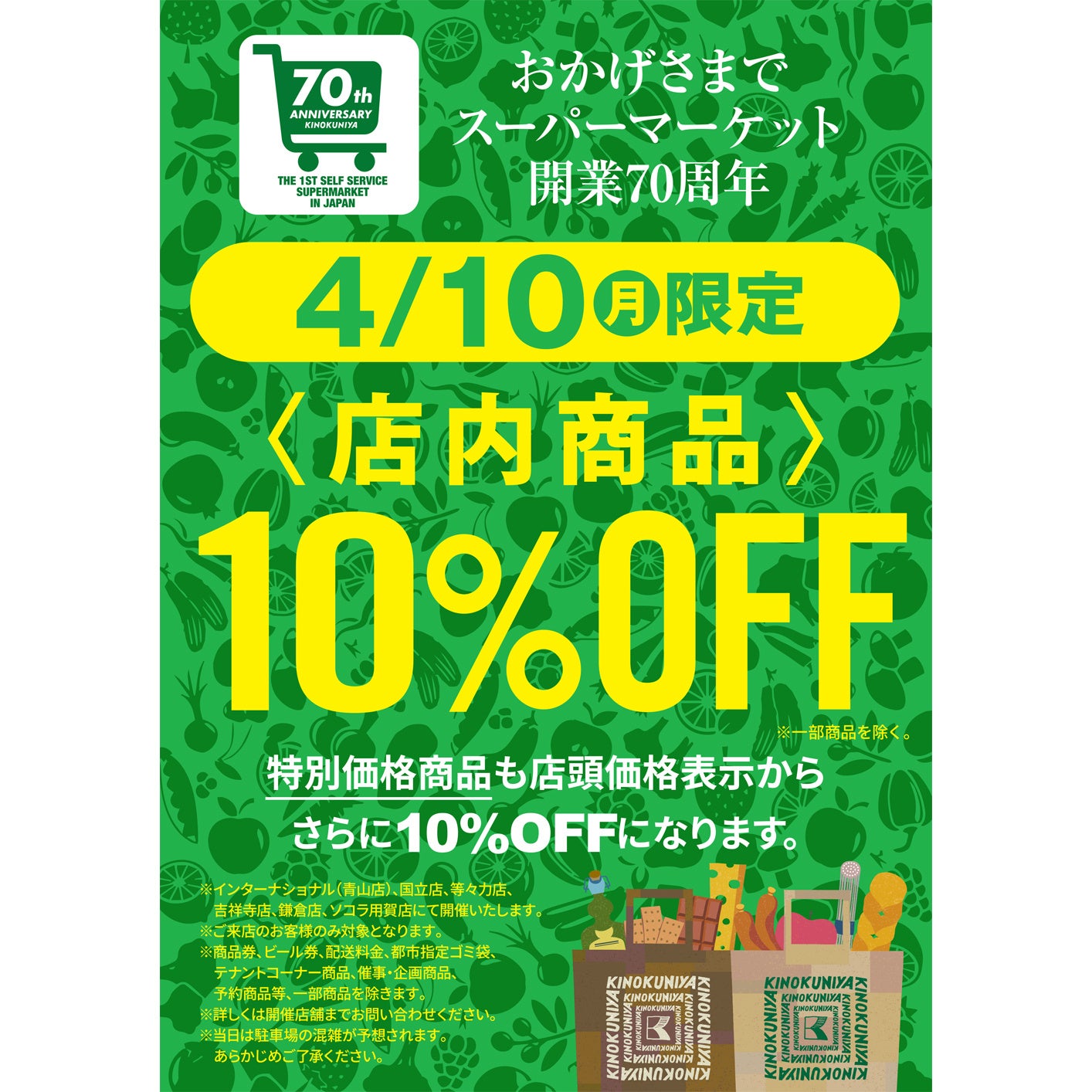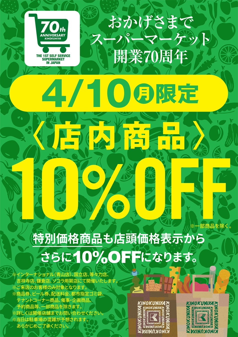 4月10日(月)、日頃のご愛顧に感謝を込めてお得なセール「謝恩セール」を、インターナショナル(青山店)、国立店、等々力店、吉祥寺店、鎌倉店、SOCOLA用賀店の6店舗で開催いたします。