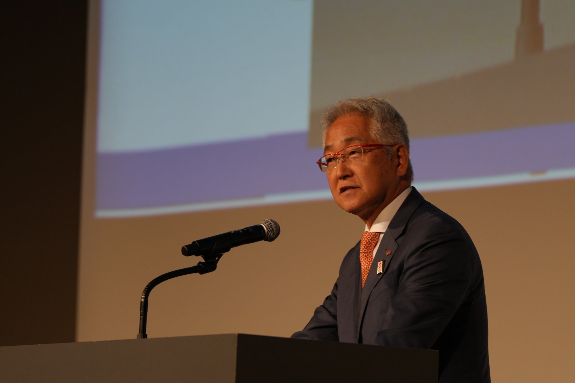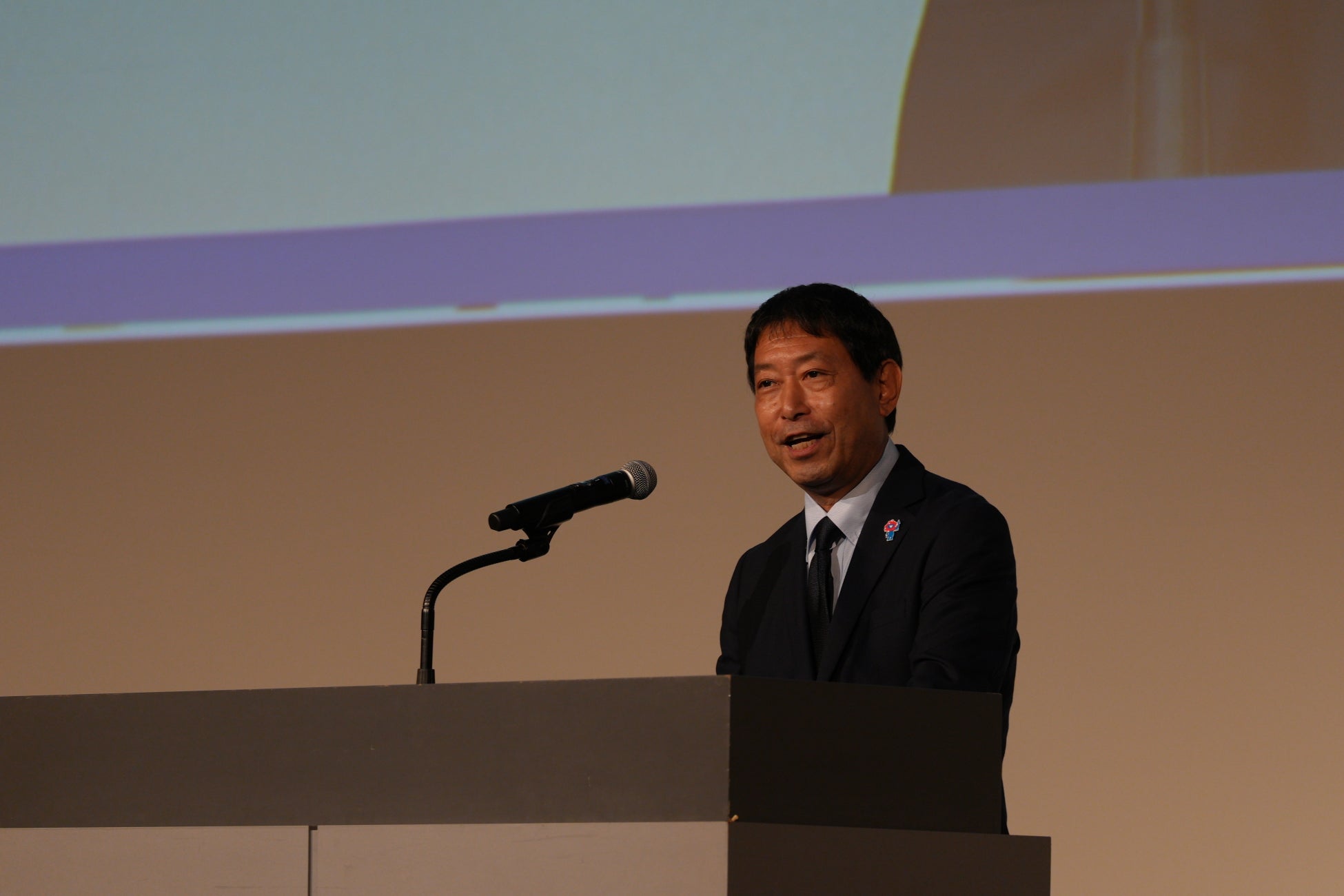 ジョイニングセレモニーでは、公益社団法人2025年 日本国際博覧会協会・会場運営局 来場者サービス部 上席審議役 安藤雅巳様より、内定者に向けて「国際的なイベントをサポートする貴重な機会を一生の思い出として刻んでいただけるよう、想いをひとつにして万博を盛り上げていきましょう。」という激励の言葉がありました。続いて、事業者を代表し、TSP太陽株式会社代表取締役社長 池澤嘉悟より、「万博に訪れる多くの皆様へのサービスと温かいおもてなしを期待しております。」という挨拶がありました。