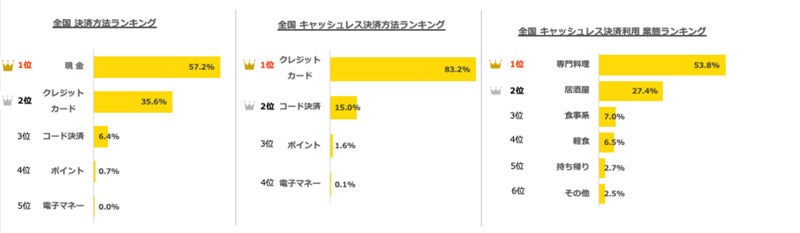 全国での決済方法では、現金が最も多く57.2%で第1位は先月と変わらず。
