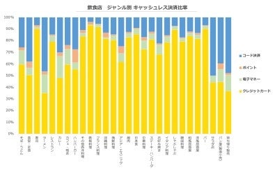 集計内容:飲食店 ジャンル別 キャッシュレス決済方法比率、キャッシュレス決済比率(内訳)