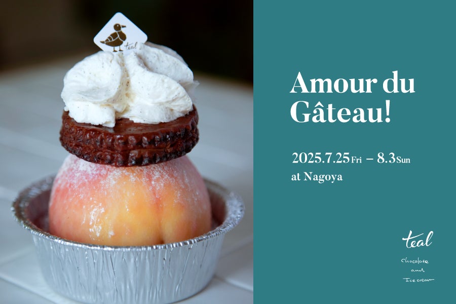 日本橋兜町のチョコレート&アイスクリームショップ「teal(ティール)」が、2025年7月25日(金)〜8月3日(日)の10日間、ジェイアール名古屋タカシマヤで開催される「開店25周年記念 2025 アムール・デュ・ガトー 〜夏のスウィーツ大好き!〜」に出店いたします。